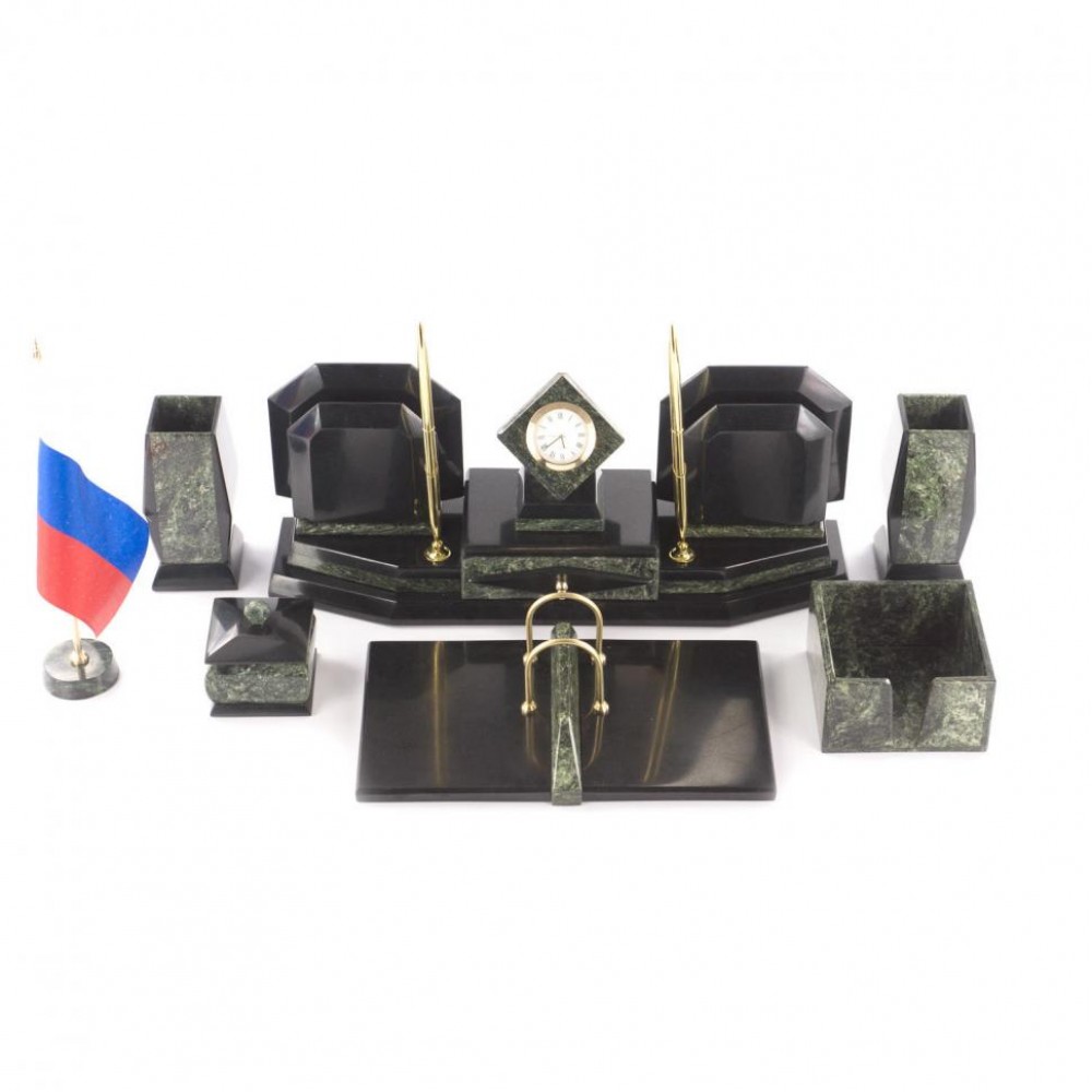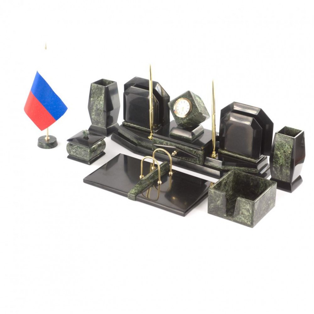 Настольные наборы из змеевика имеют стильный дизайн и вдобавок они сделаны вручную из натуральных и экологичных материалов.