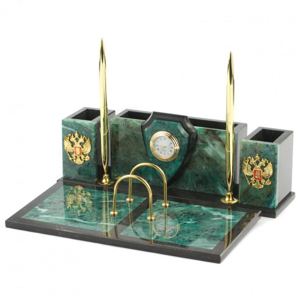 Настольный набор из природного камня станет прекрасным подарком директору и хорошо впишется в интерьер любого кабинета, став полезным дополнением рабочего стола.