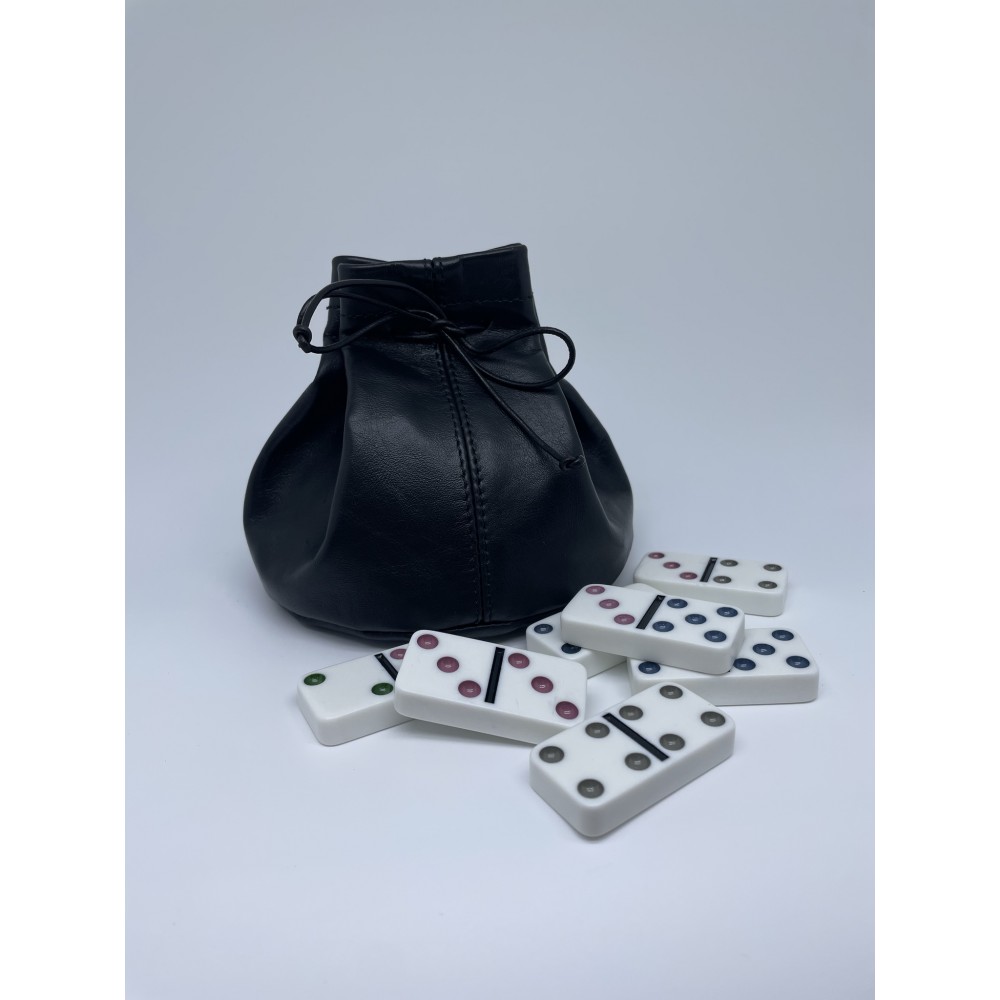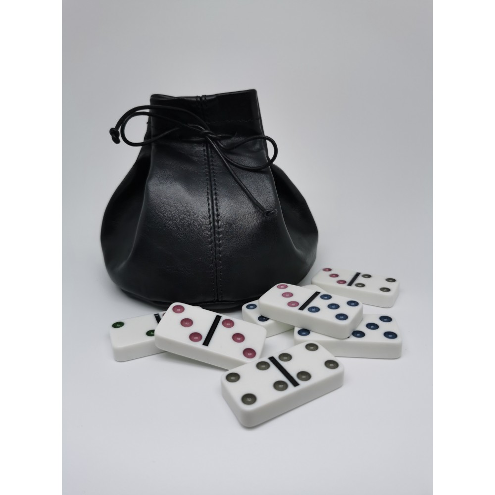 Подарочный набор домино с 28 фишками в кожаном мешочке, с завязкой из кожаного шнурка. Будет идеальным подарком для любителей домино. Фишки выполнены из ударопрочного пластика отличного качества. Размер фишки 47*23*9 мм. "Домино" - легендарная игра и отличный способ весело и интересно провести время в кругу семьи или друзей, а так же помогает скоротать время в длительной поездке. Подходит как для спокойных семейных вечеров, так и для больших и шумных компаний. В игре решается несколько развивающих задач: объединение по признакам и смыслу, установление связи и обобщение, закрепление навыков счета, развитие логического мышления, развитие речи В наборе 28 пластиковых костяшки белого цвета с черными точками, обозначающими комбинации чисел на двух полях. Размер 48*23*8 мм. Правила игры стандартны, как в любом домино: игрокам раздаётся по 3-5 костяшек в зависимости от количества игроков. Начинает игрок, у которого есть дубль (комбинация одинаковых чисел с обоих сторон). После первого хода игроки выкладывают костяшки с соответствующими числами так, чтобы лежащие рядом числа совпадали. Если у игрока отсутствует нужная костяшка, он берёт её из резерва. Игра продолжается до тех пор, пока у одного из игроков не закончатся все костяшки. Домино считается классикой настольных игр, прошедшей через поколения, оно обязательно подарит вам массу позитивных эмоций и станет отличной зарядкой для ума.