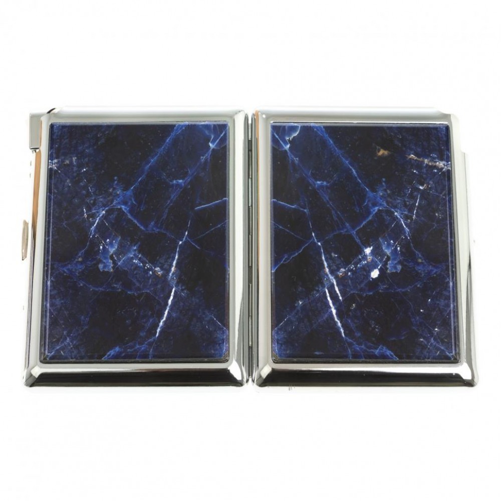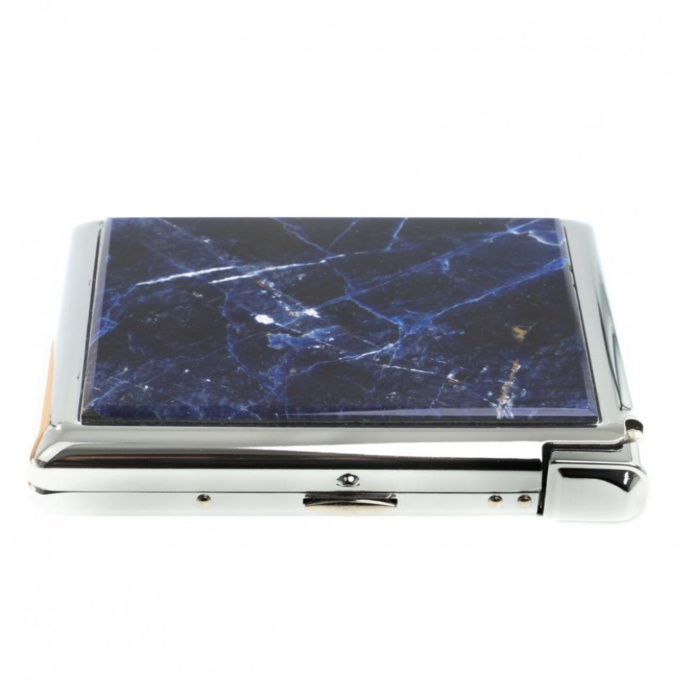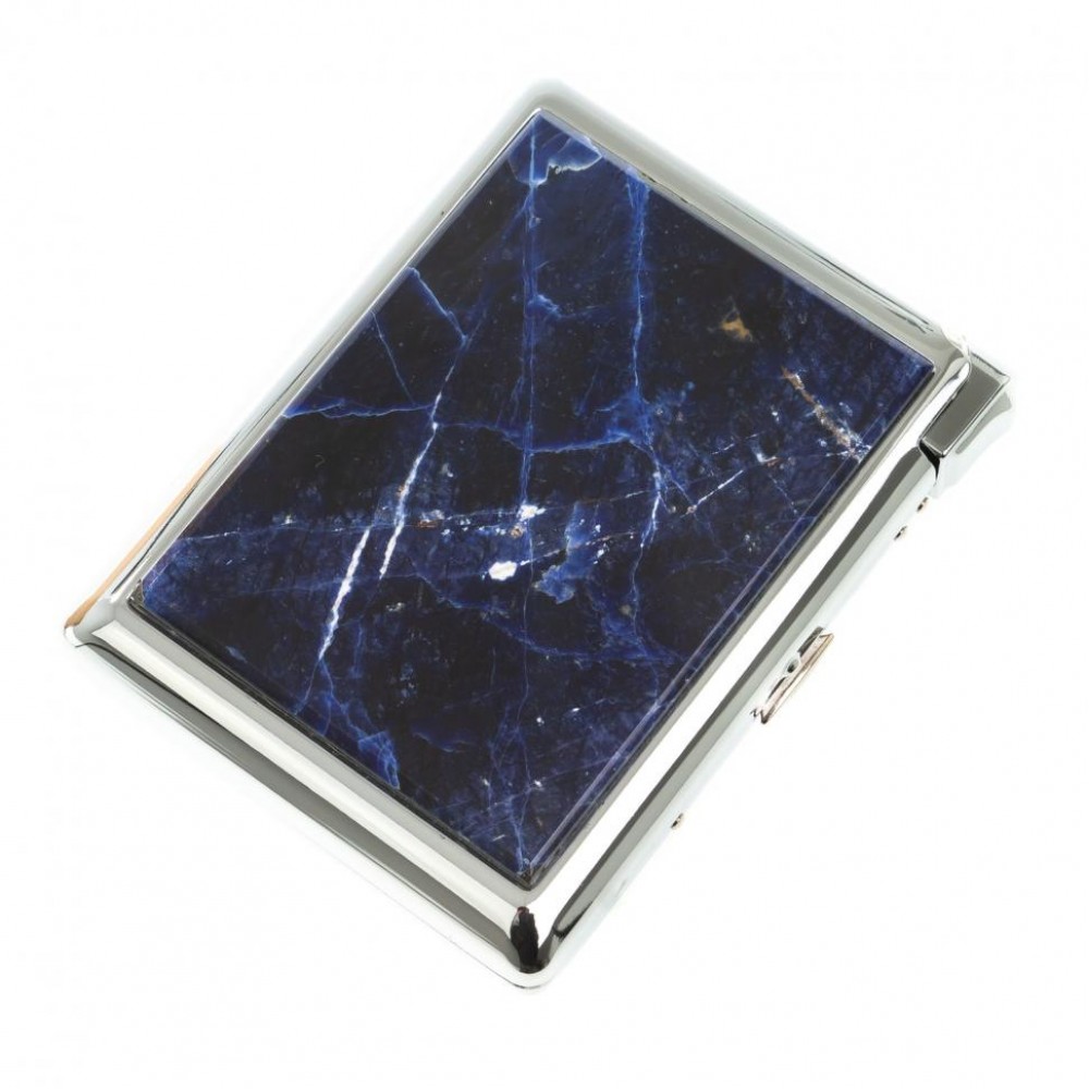 Портсигар на 20 сигарет с зажигалкой камень содалит размером 11х8,5х2,3 см и весом 220 г.