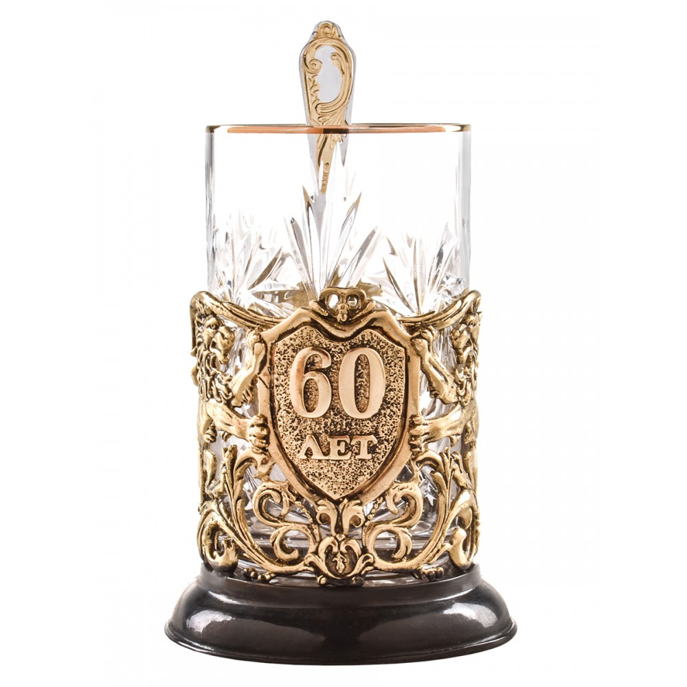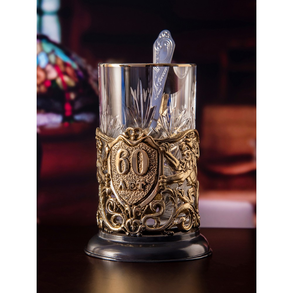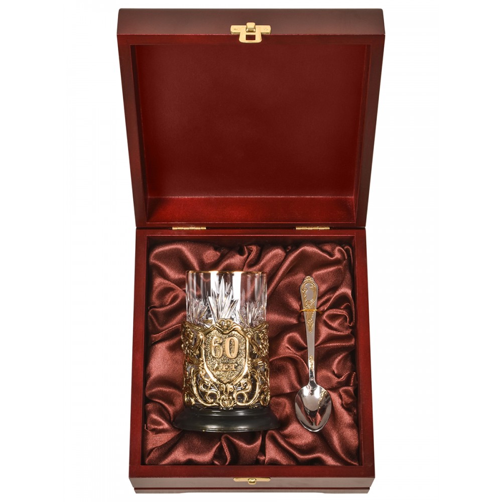 Подстаканник ручной работы "60 лет" Юбилейный в деревянной шкатулке