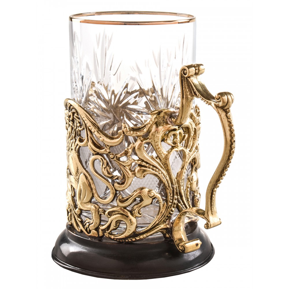 • Основной материал: Латунь/Металл/ХрустальРазмеры: Размер подстаканника: диаметр 9 см, высота 12,5 см. Вес 295 гр.Объем 2..