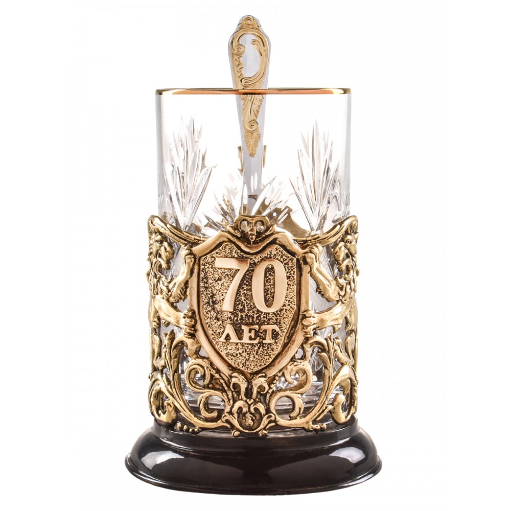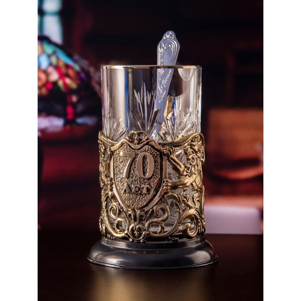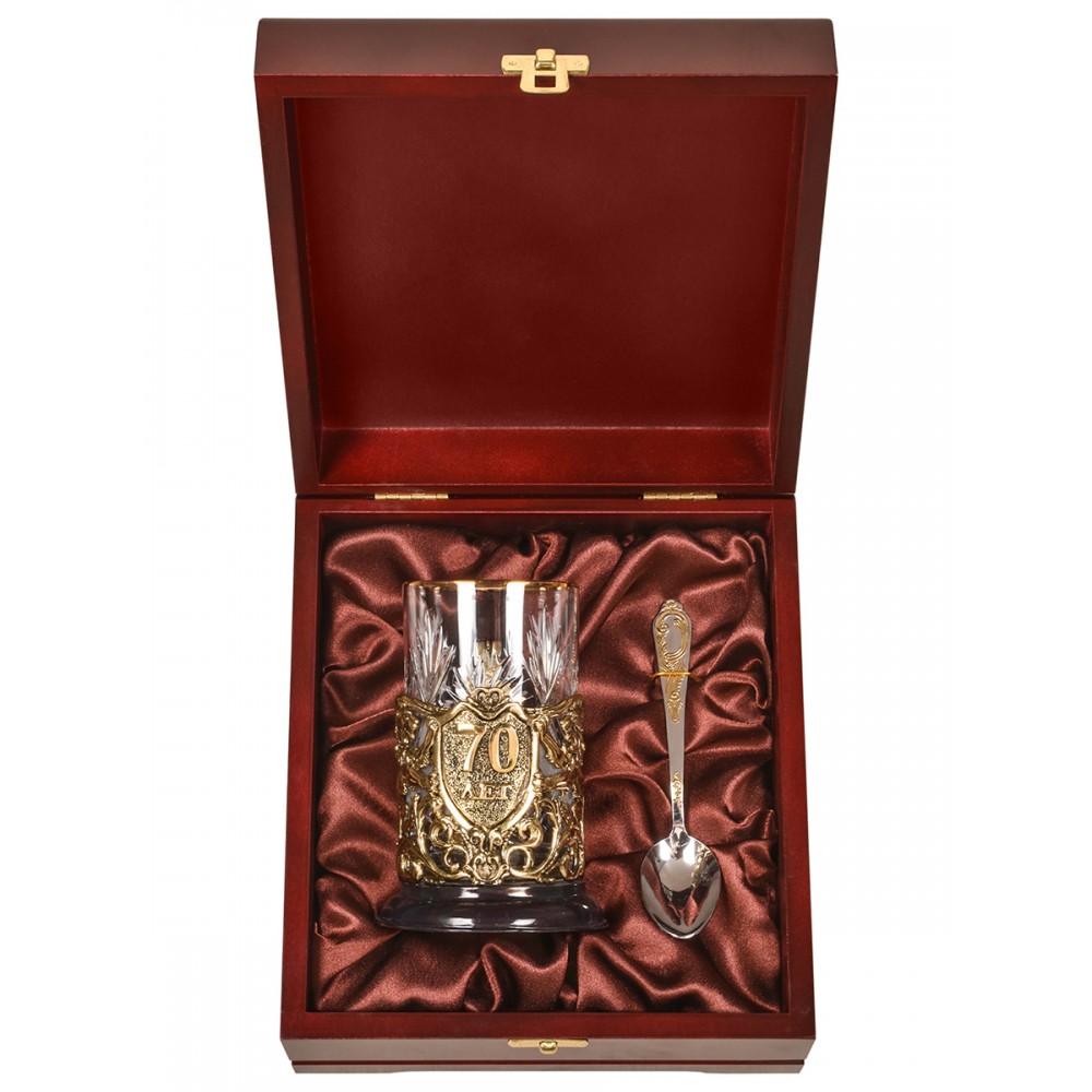Подстаканник ручной работы "70 лет" Юбилейный в деревянной шкатулке