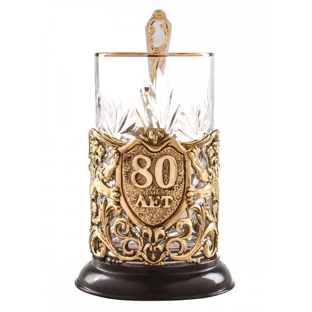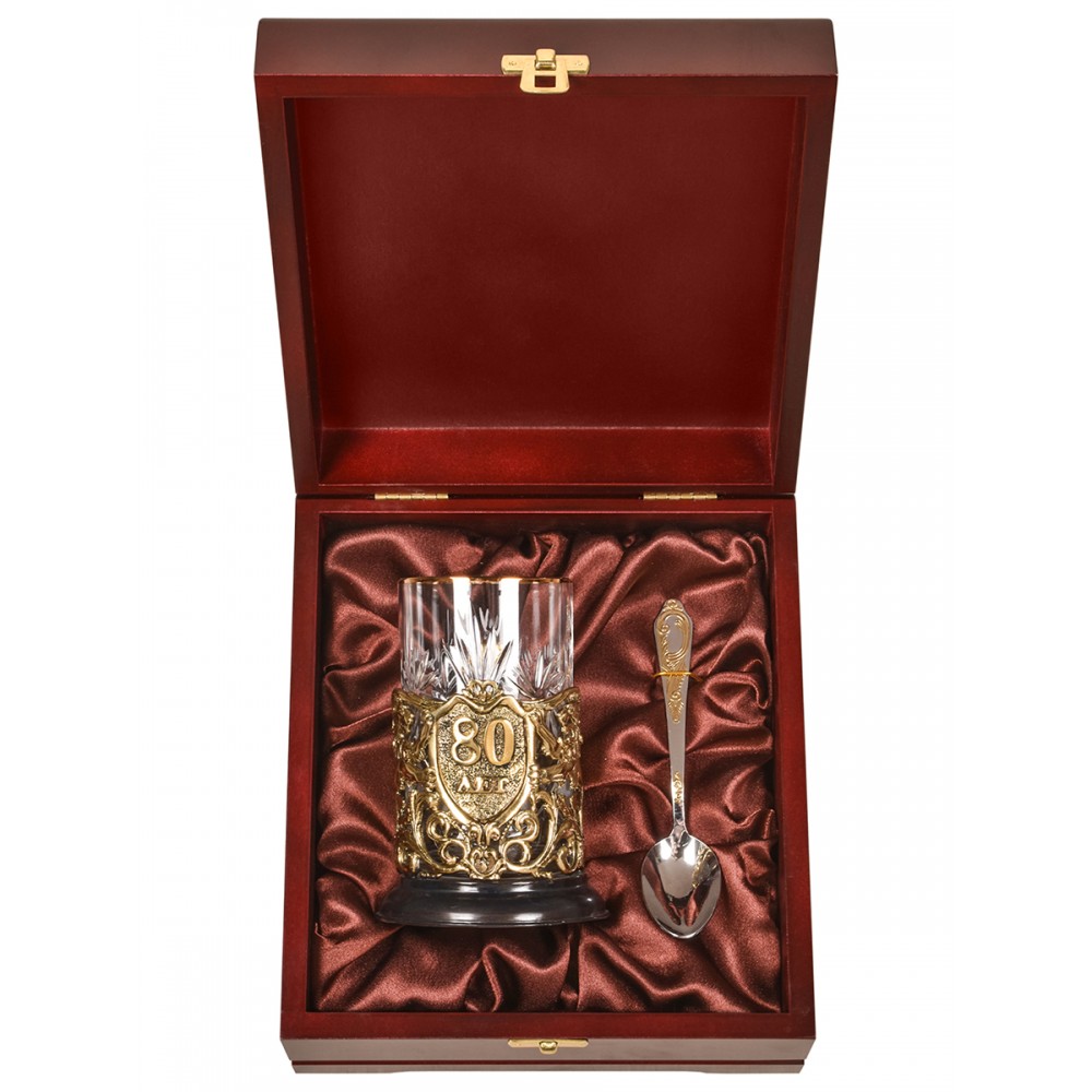 Подстаканник ручной работы "80 лет" Юбилейный в деревянной шкатулке