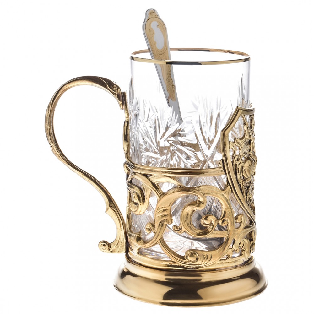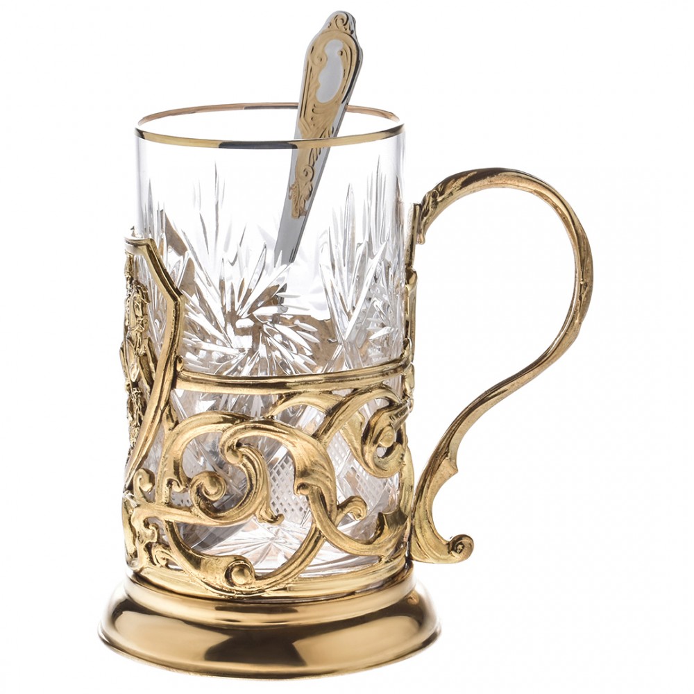 • Основной материал: Латунь/Металл/ХрустальРазмеры: Размер подстаканника: диаметр 9 см, высота 12,5 см. Вес 295 гр.Объем 2..