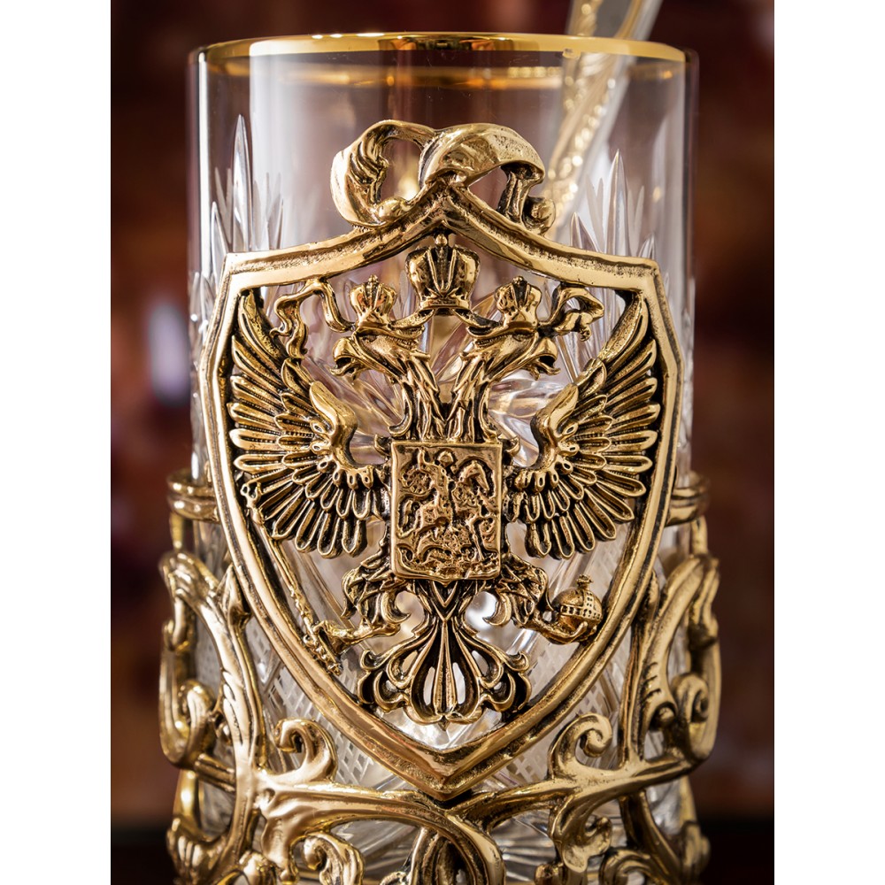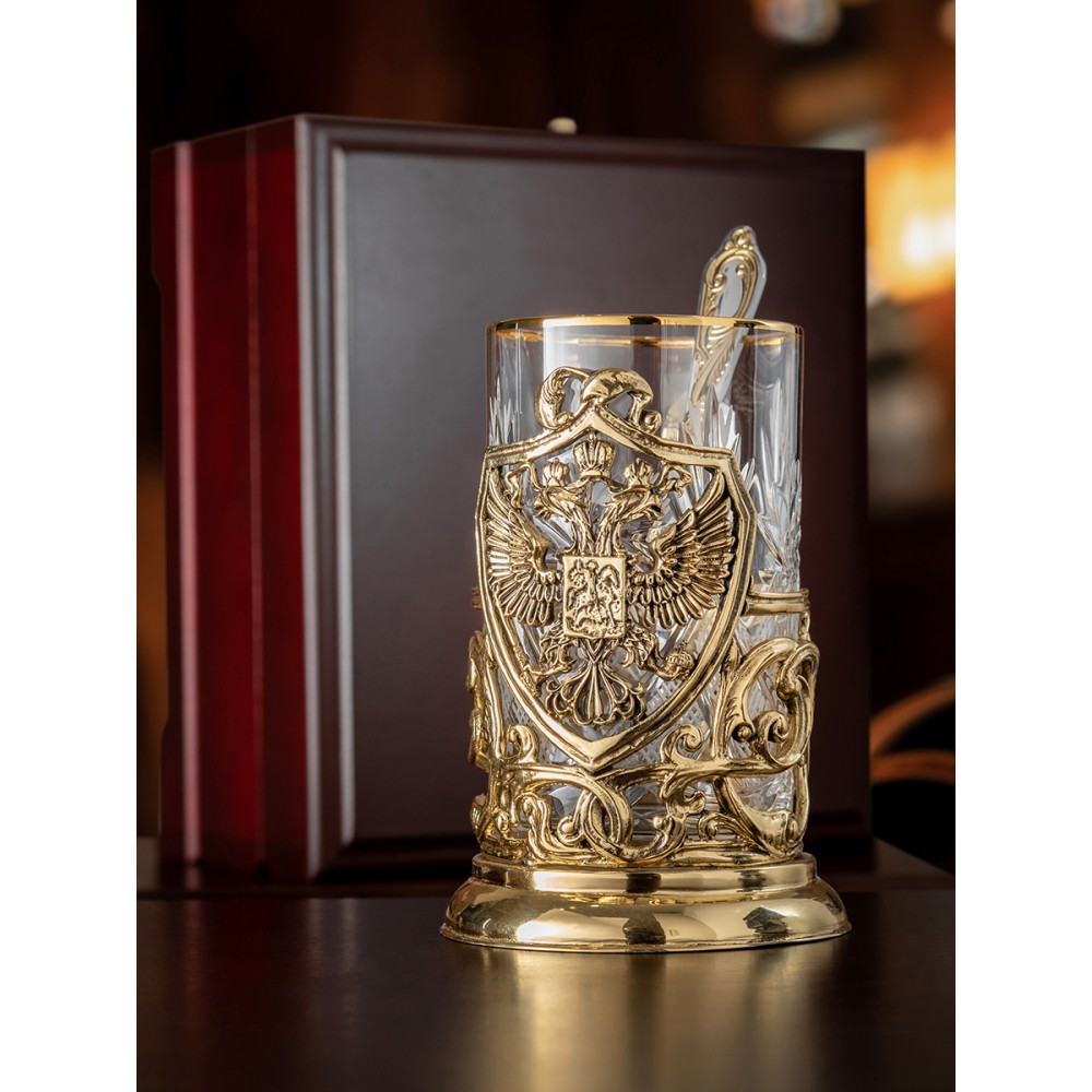 Подстаканник ручной работы "Герб" набор 3 предмета в деревянной шкатулке
