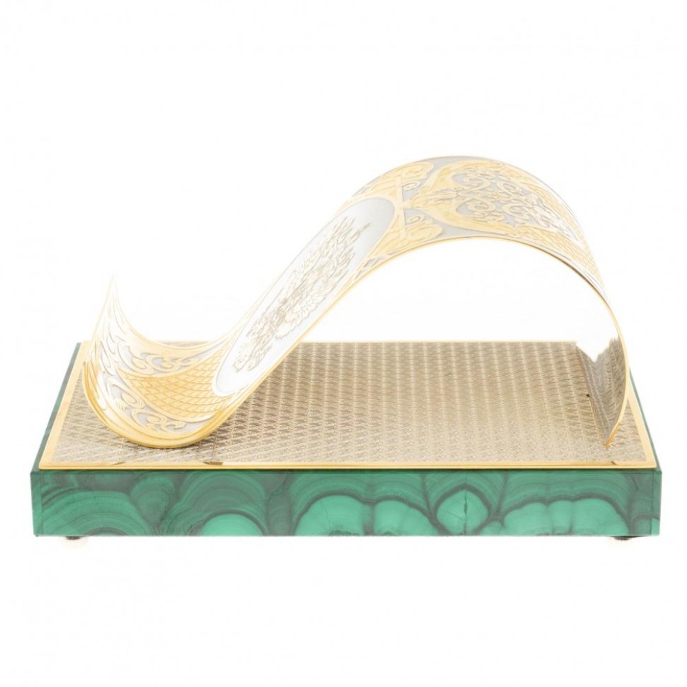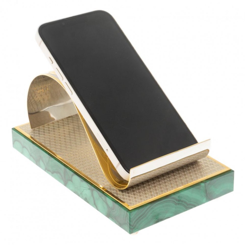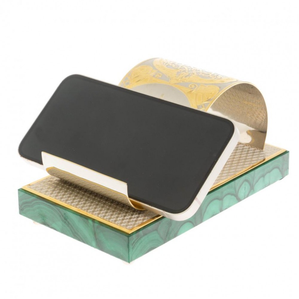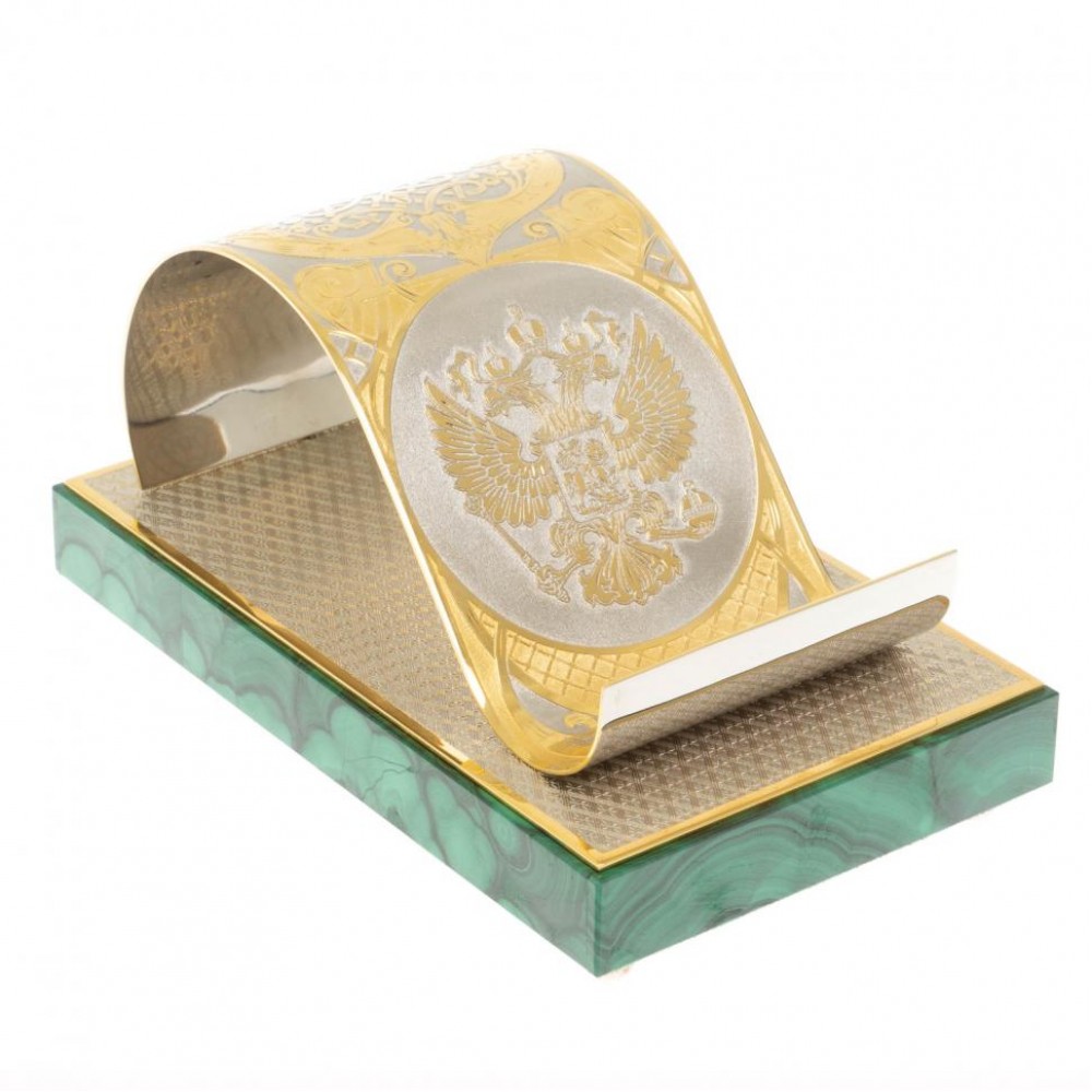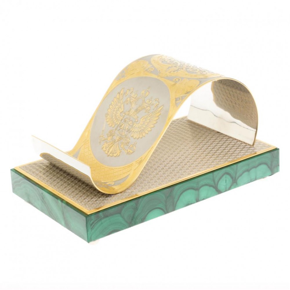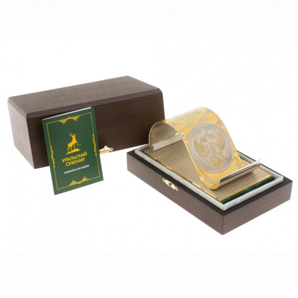 Подставка под телефон "Герб России" из малахита Златоуст размером 9,5х16х8,5 см и весом 1100 г.