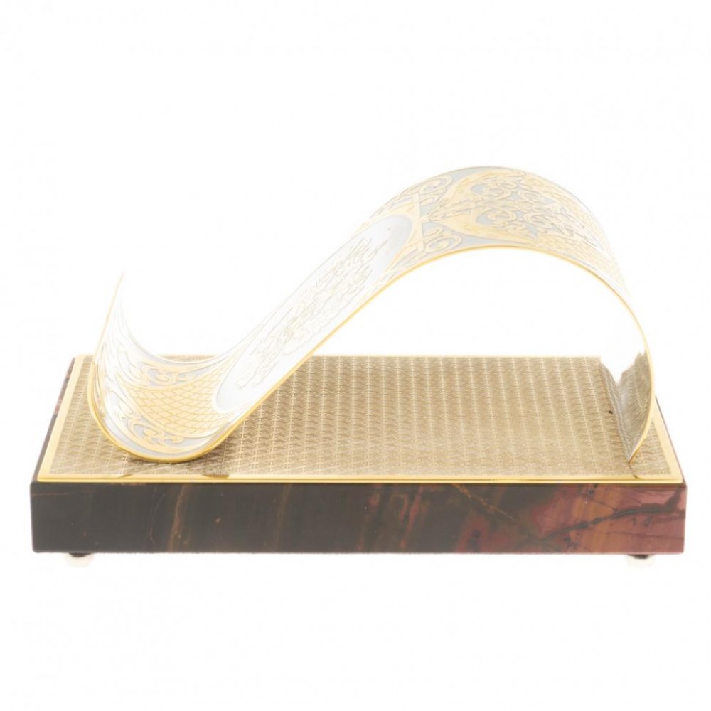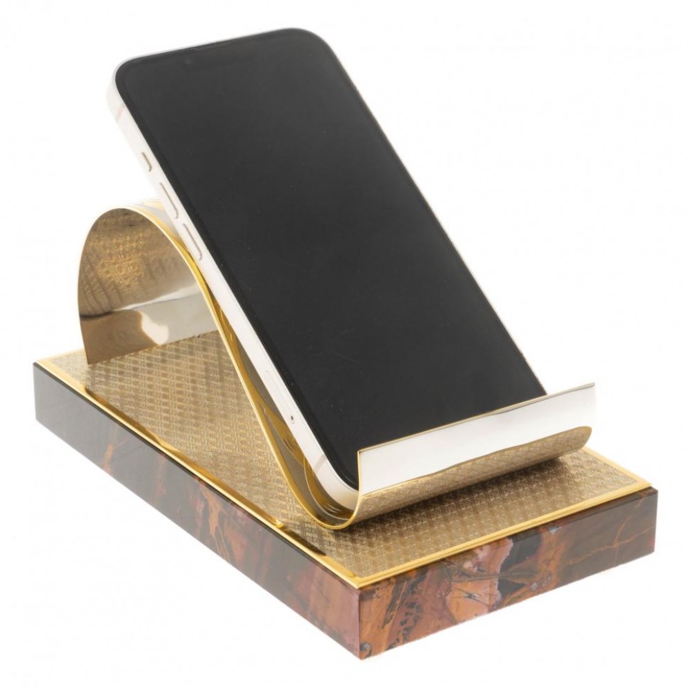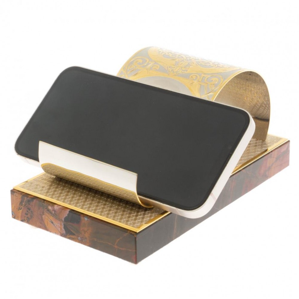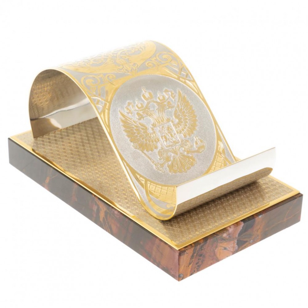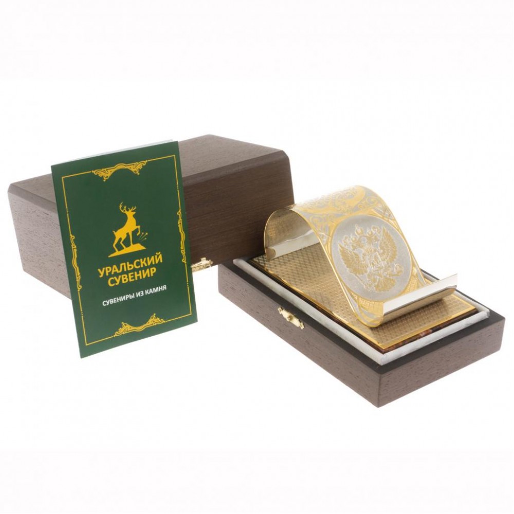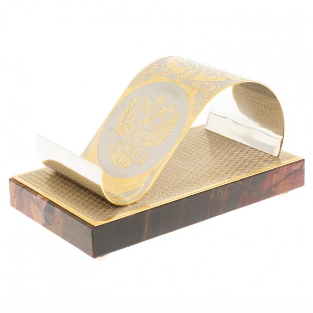 Подставка под телефон "Герб России" из яшмы Златоуст размером 9,5х16х8,5 см и весом 1100 г.