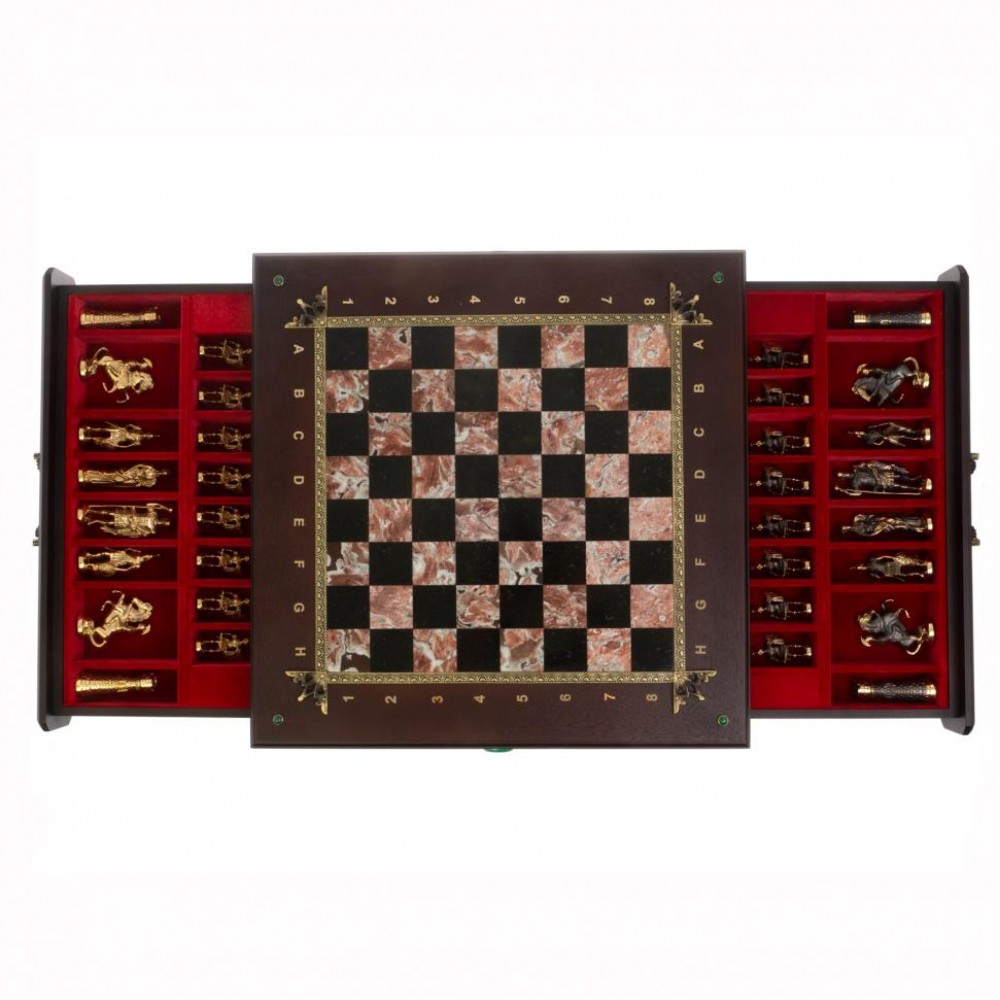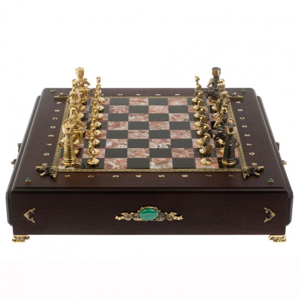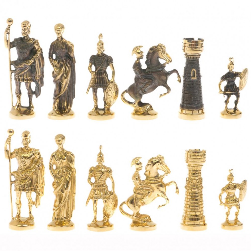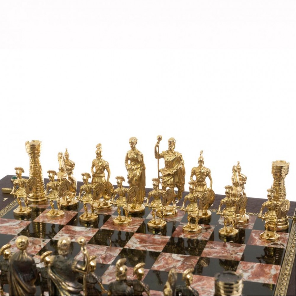 Шахматный ларец "Римские" из бронзы и креноида размером ларец 49х49х10 см, клетка 4х4 см, высота фигур 5,6-9 см и весом 17000 г.