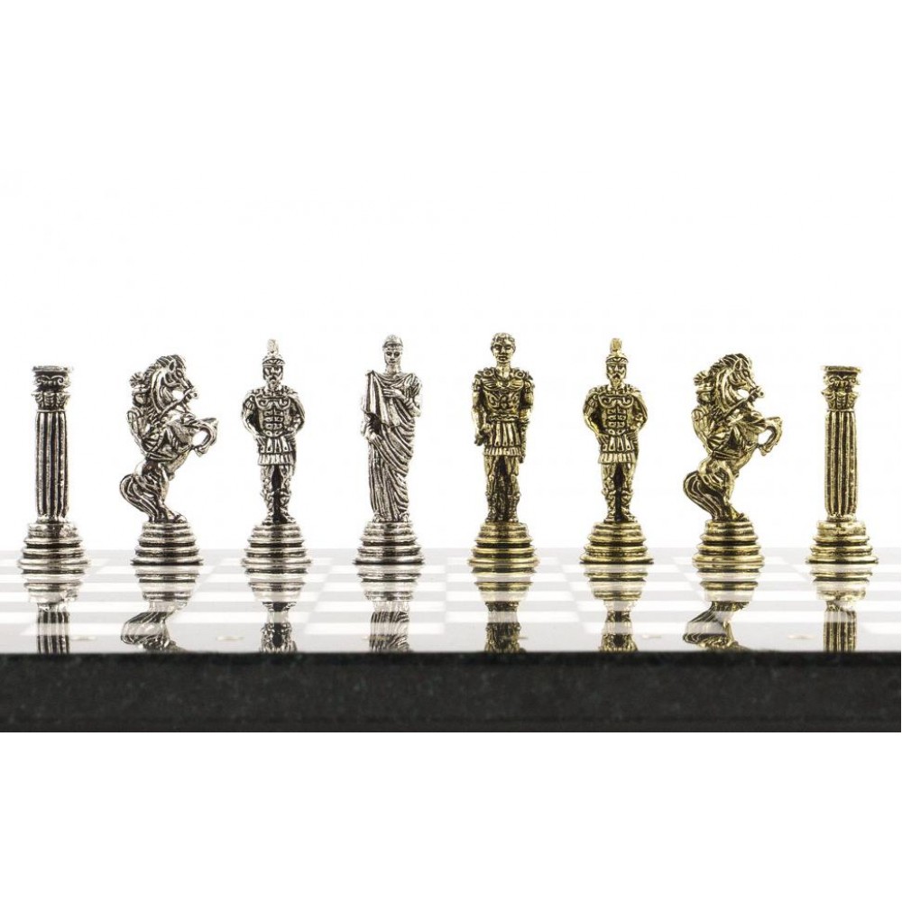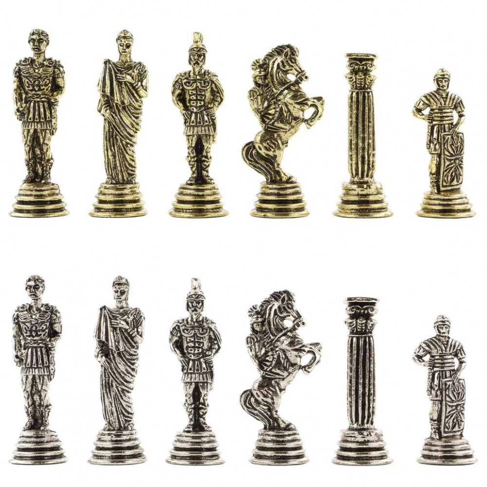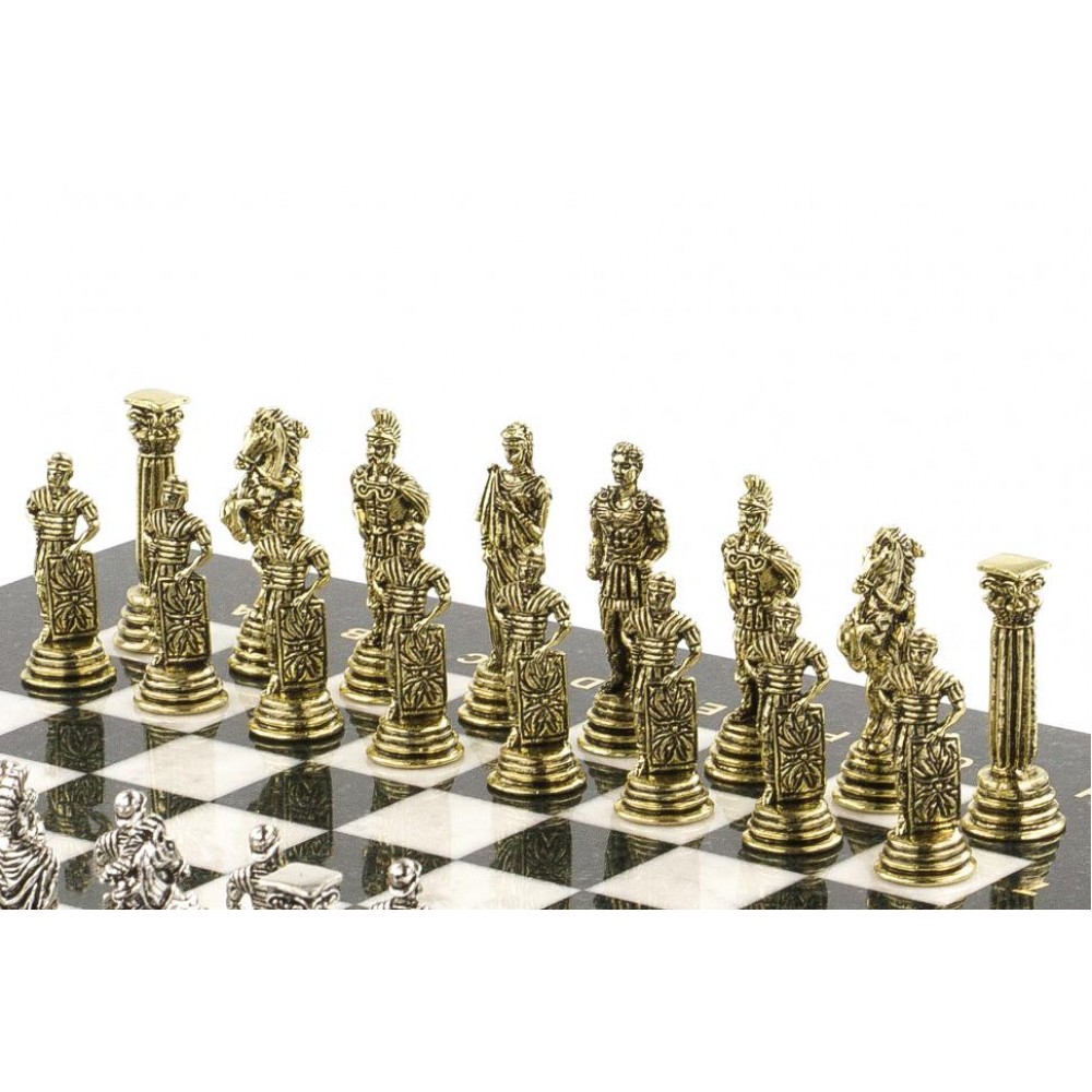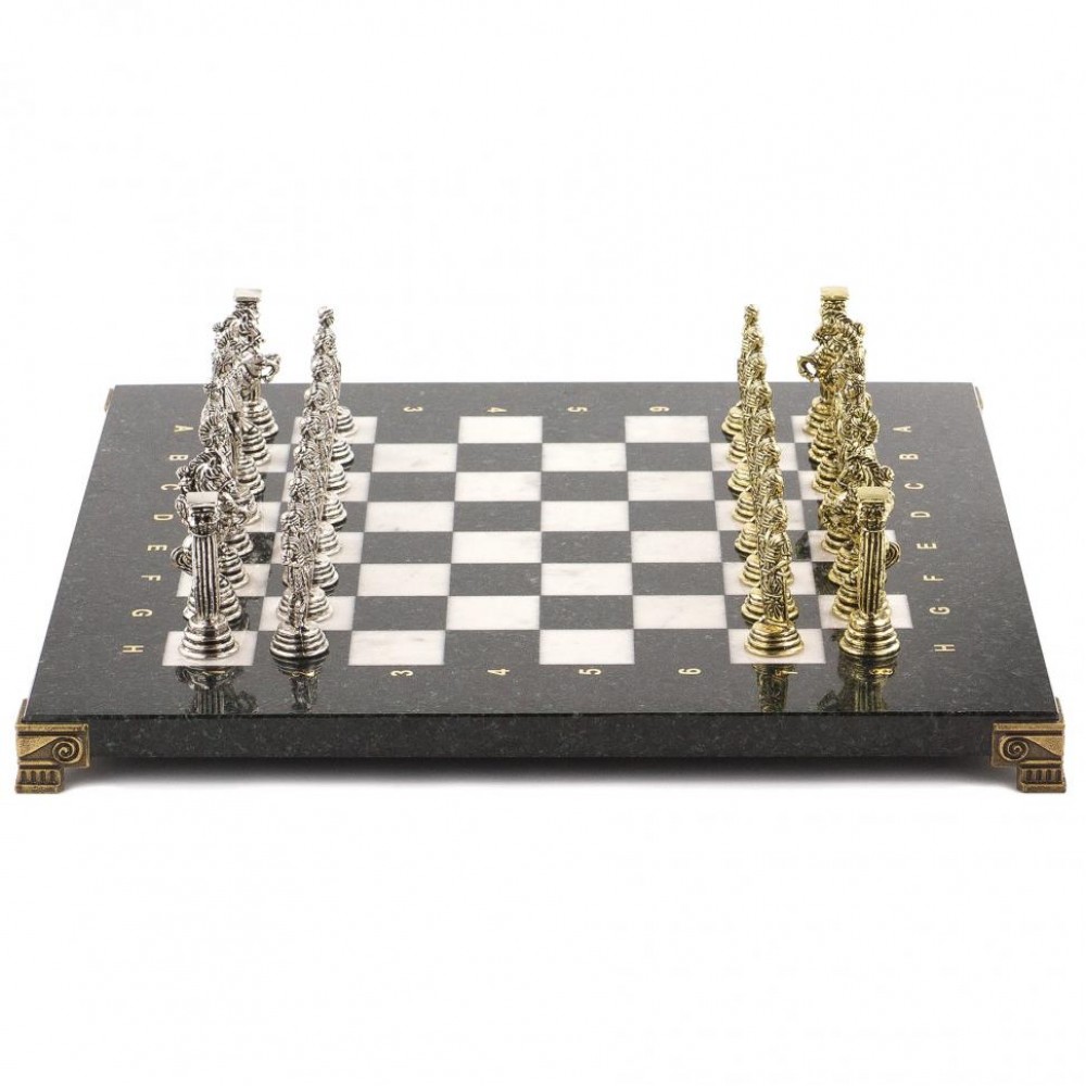 Шахматы выполнены из природного камня мрамор, фигуры из металла, имеет размеры доски 32х32х3 см и весят 7000 г.