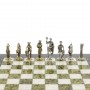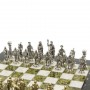 Шахматный набор "Галлы и Римляне" изготовлен вручную из высококачественных материалов: доска из натурального камня, фигуры металлические в цвете золото и серебро.