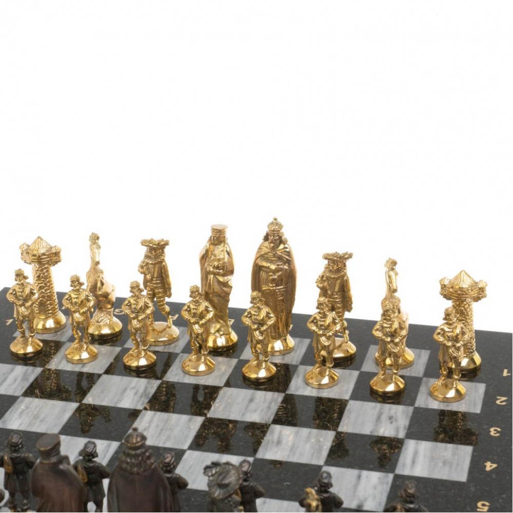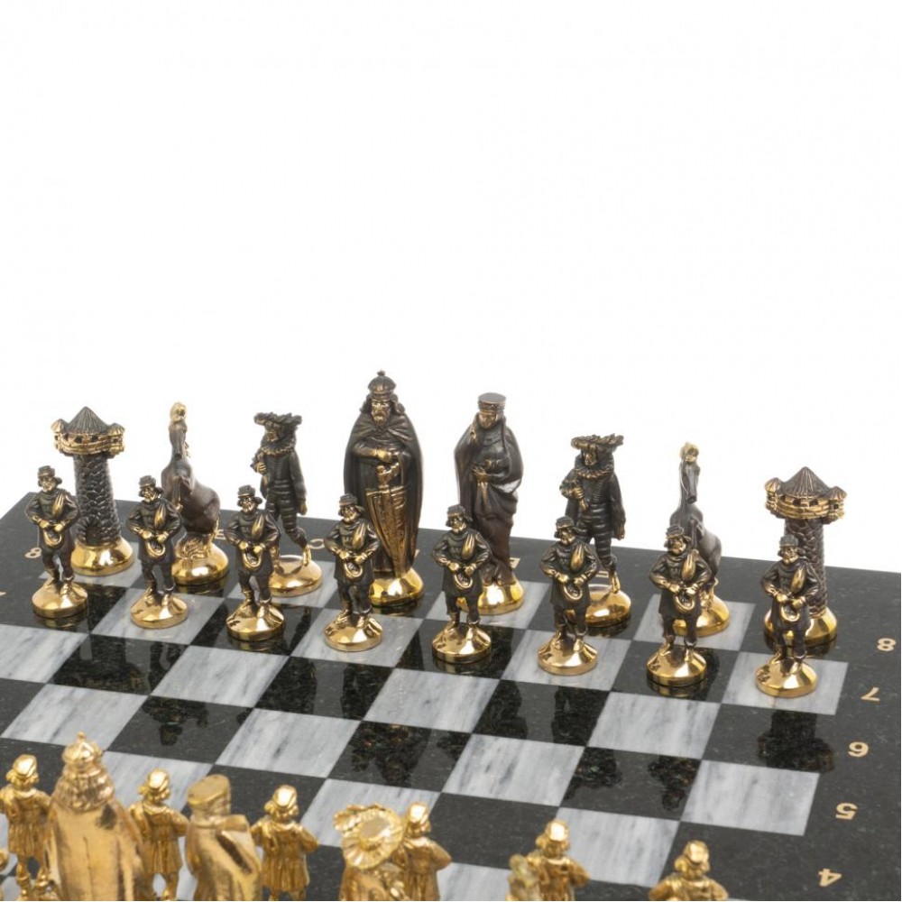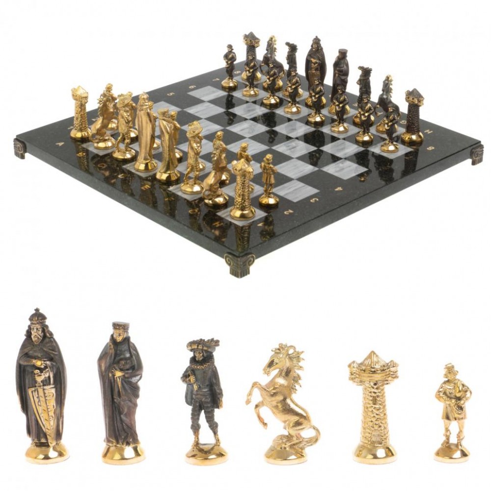 Набор для игры в шахматы изготовлен вручную, доска из натурального камня, фигуры художественное литье из бронзы.