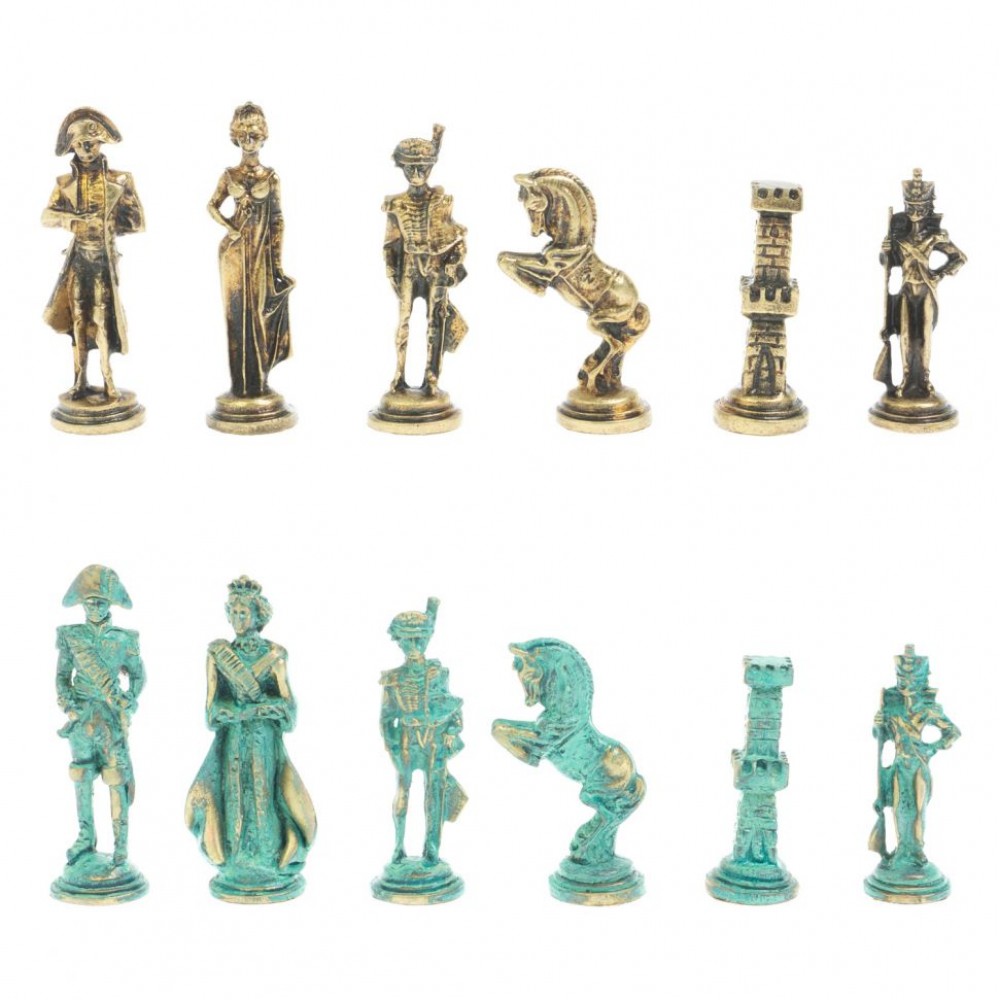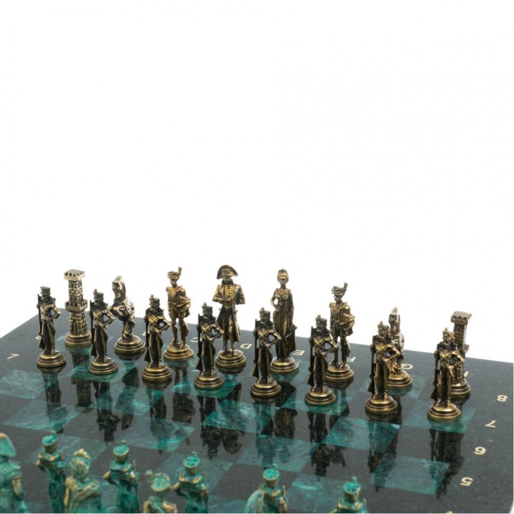 Исторические шахматы – новинка в нашем ассортименте. Шахматные фигуры в золотом цвете – русские войска во главе с Александром I, с другой стороны в серебряном цвете – французские войска во главе с Наполеоном Бонапартом. Фигуры выполнены из металла с высокой степенью детализации игровых персонажей. Доска изготовлена из уральских камней - черного и зеленого змеевика. В комплекте подарочный кейс из экокожи.