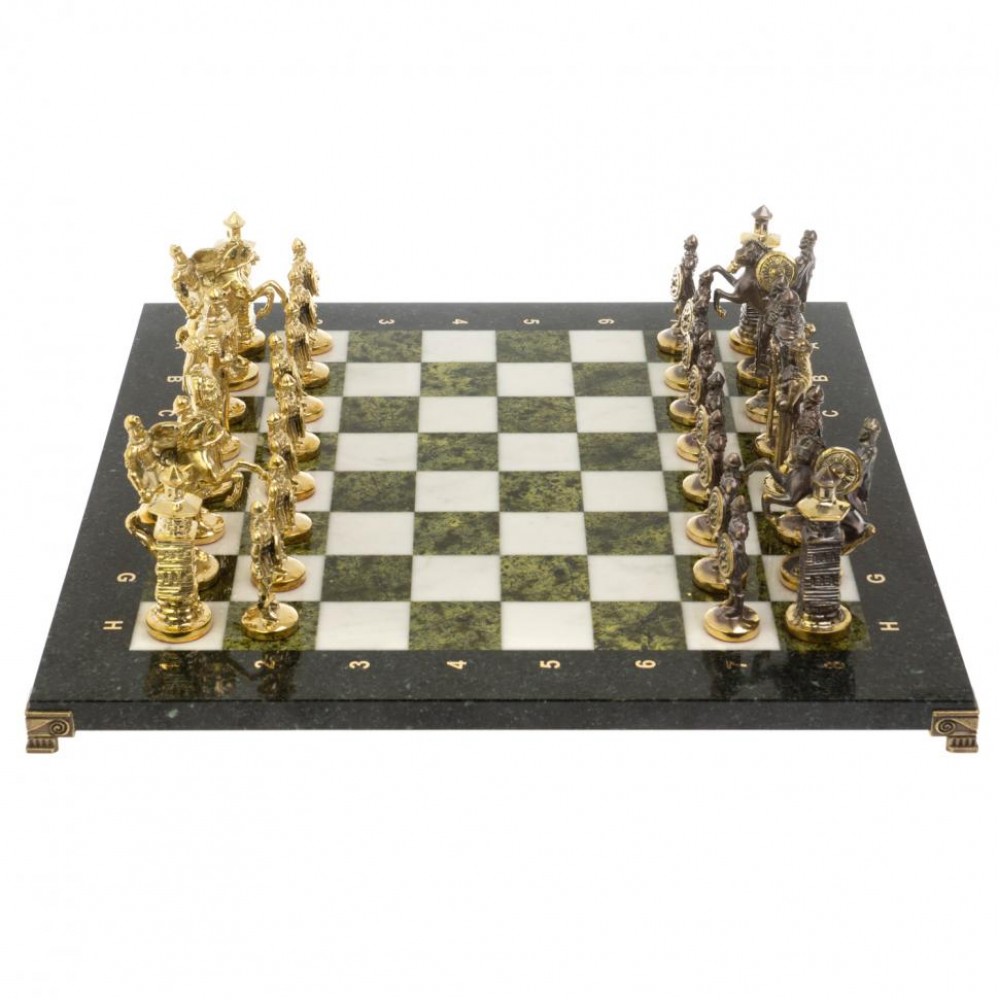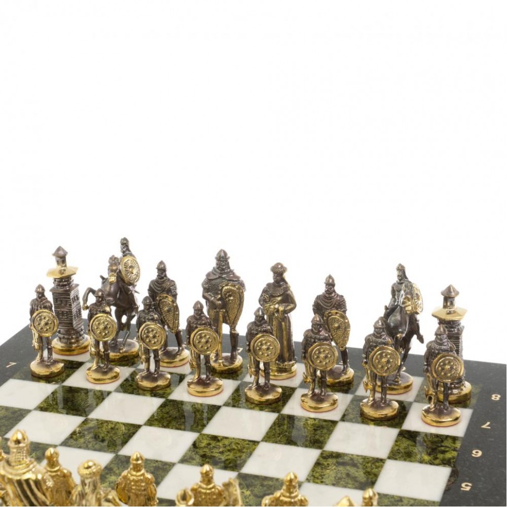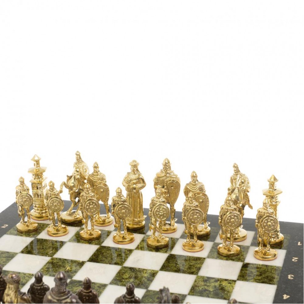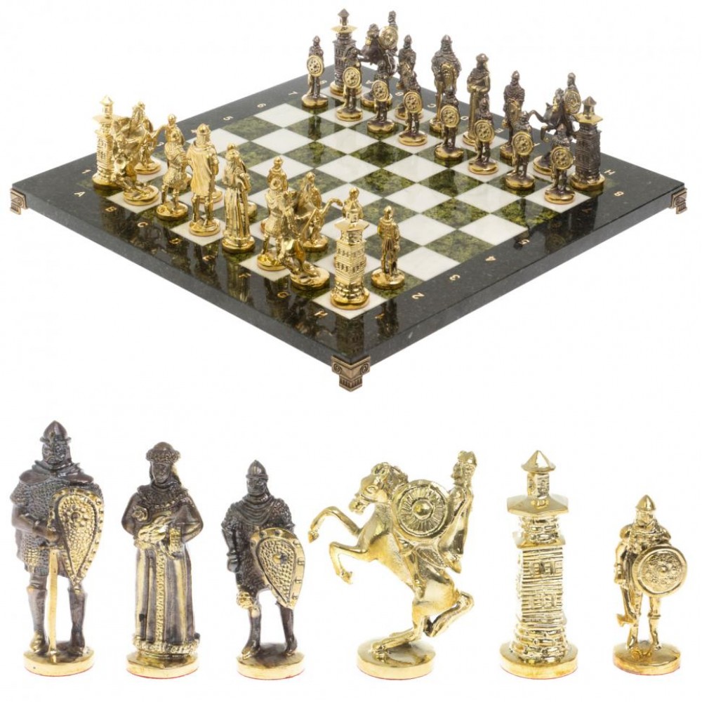 Шахматы подарочные "Богатыри" из мрамора и змеевика 44х44 см размером доска 44х44х3 см, клетка 4,5х4,5 см, высота фигур: пешка 7,5 см, король 10 см и весом 14000 г.