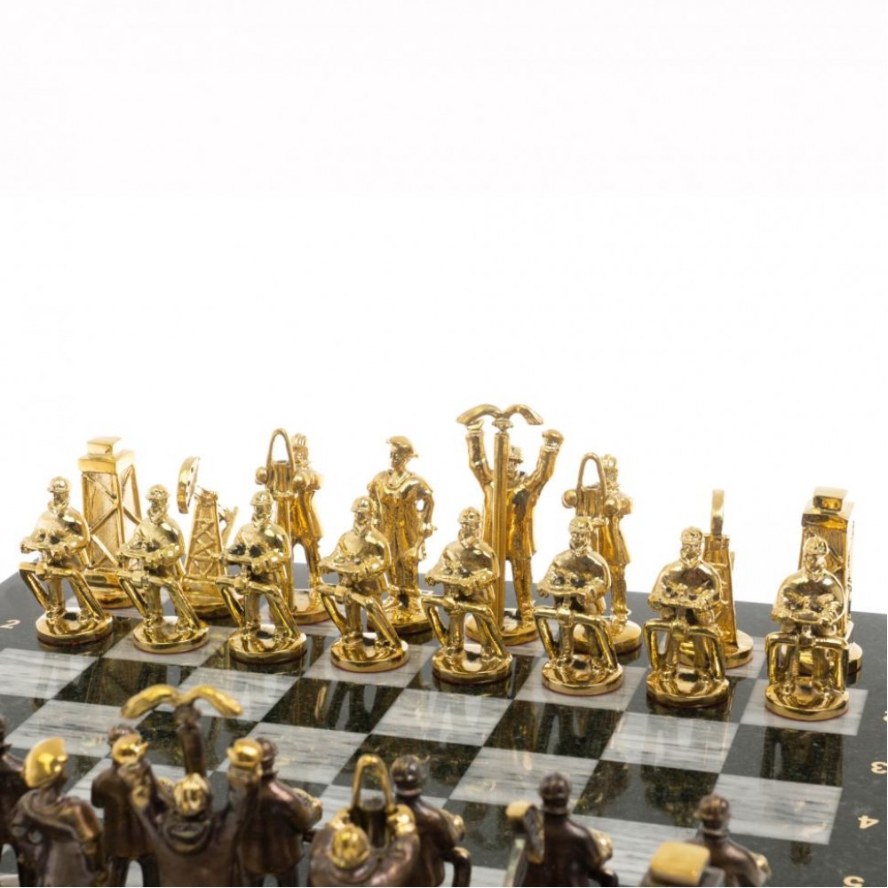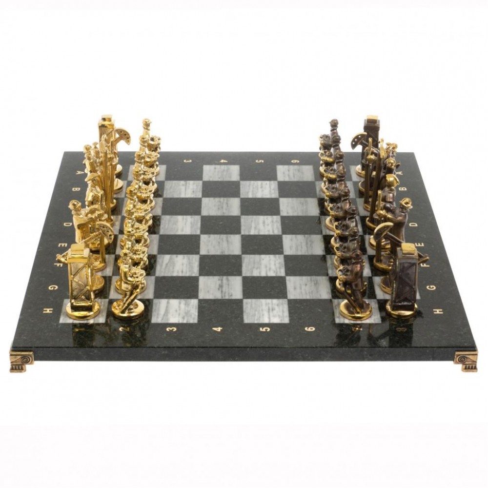 Набор для игры в шахматы изготовлен вручную, доска нескладная из натурального камня, шахматные фигуры бронзовые.