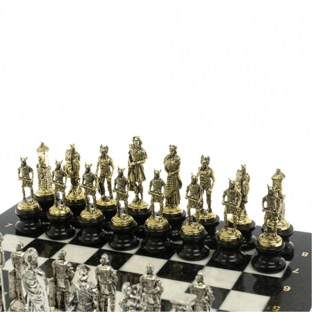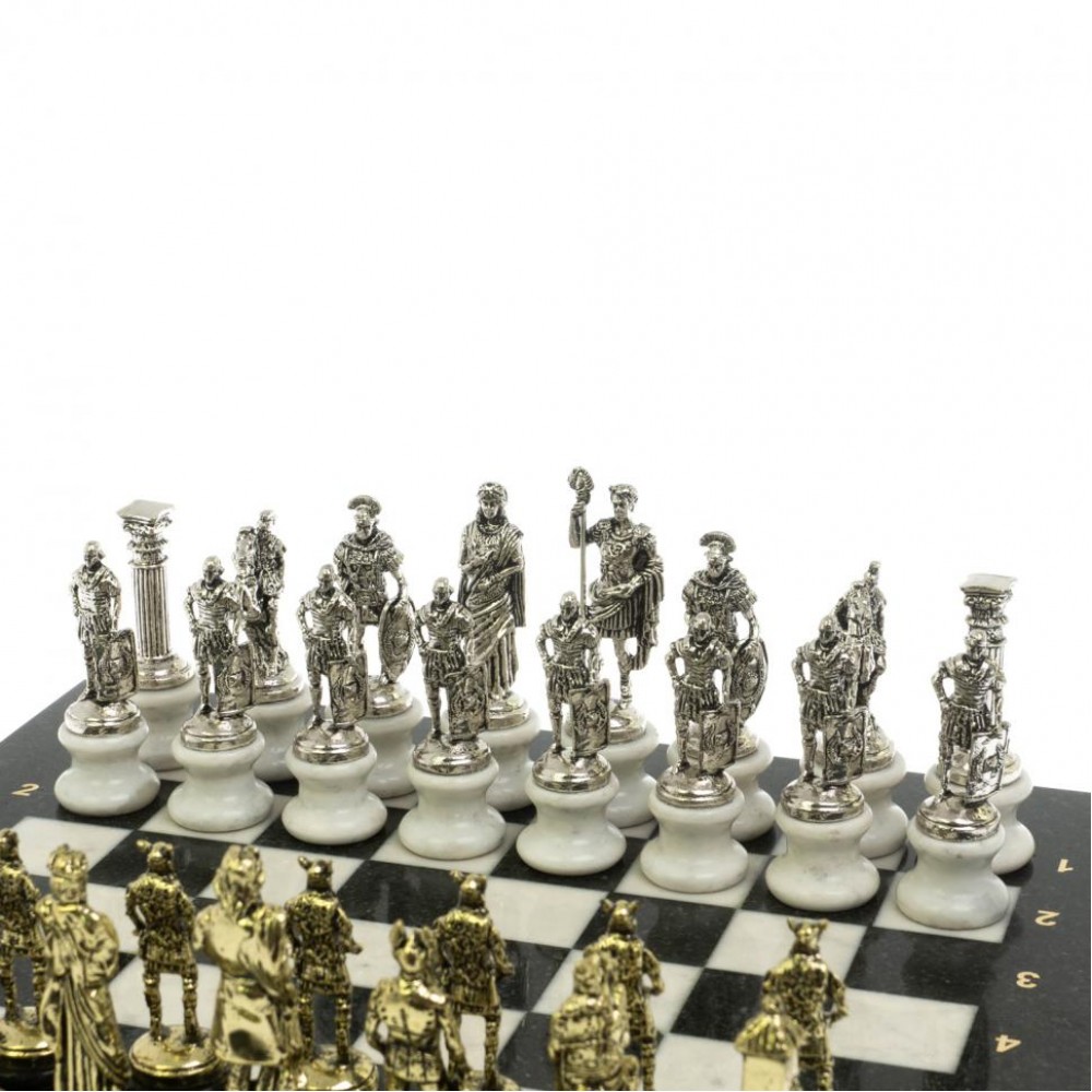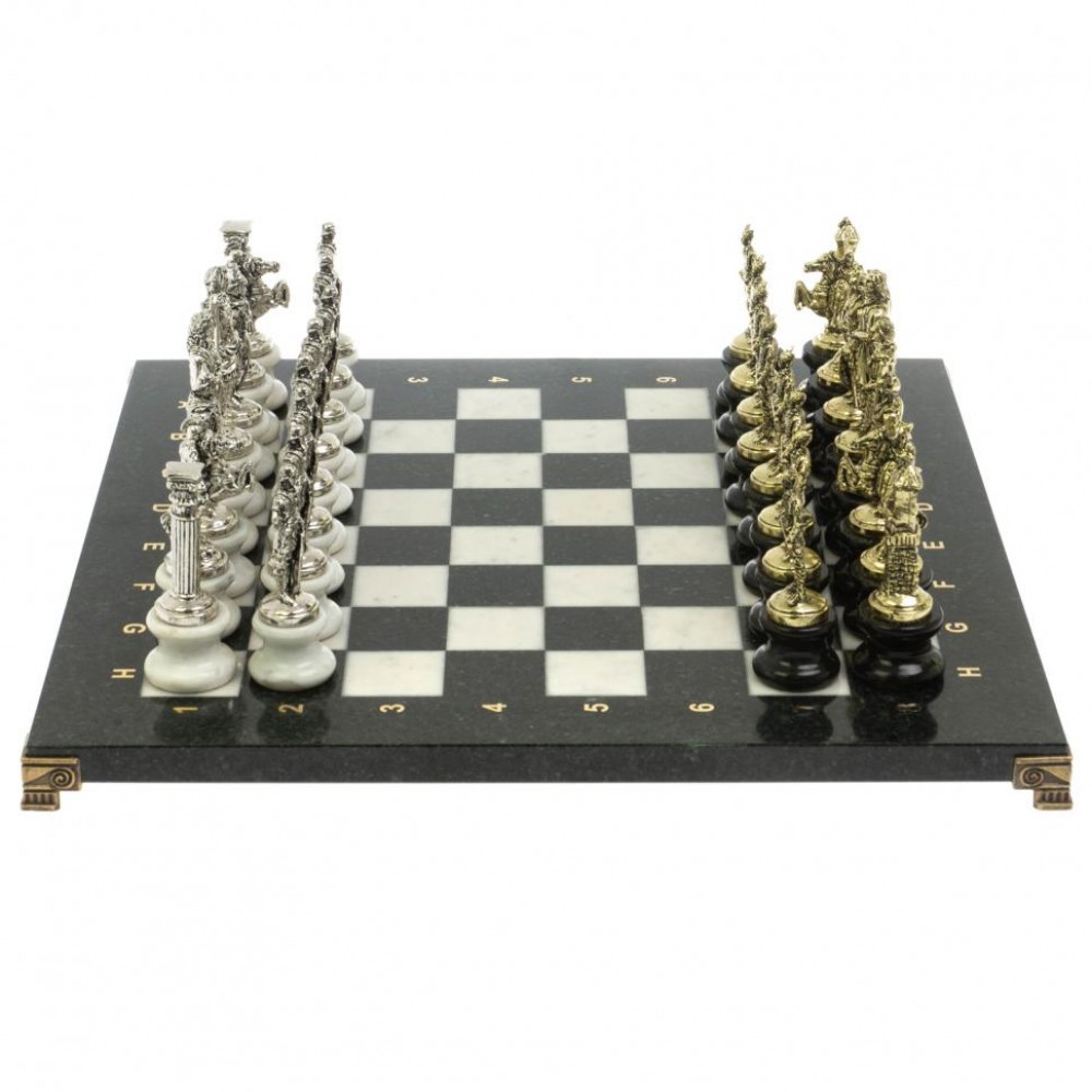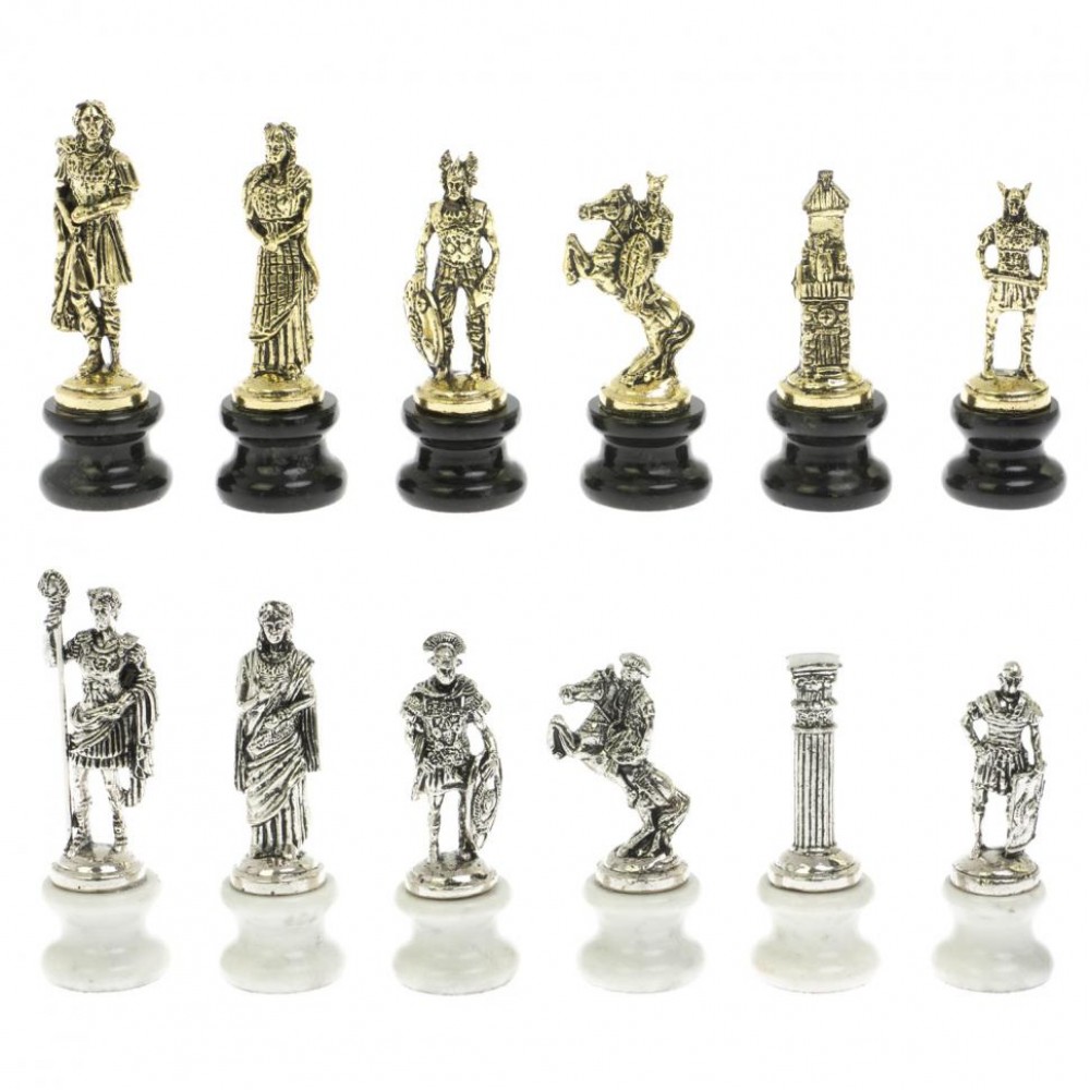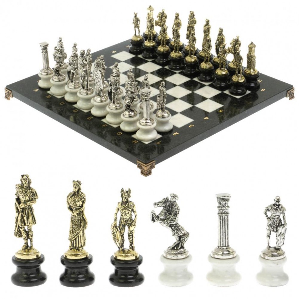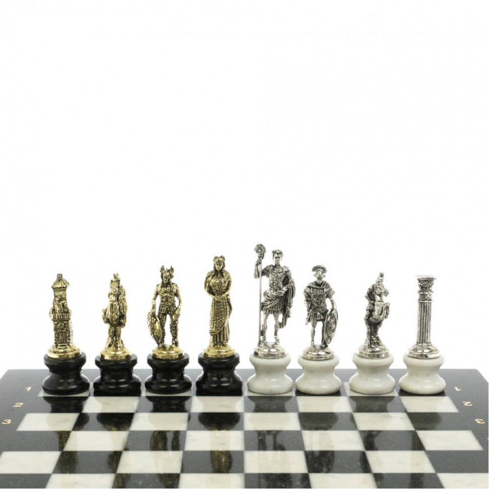 Шахматы "Римляне против Галлов" на подставках доска 40х40 см мрамор/змеевик размером и весом .