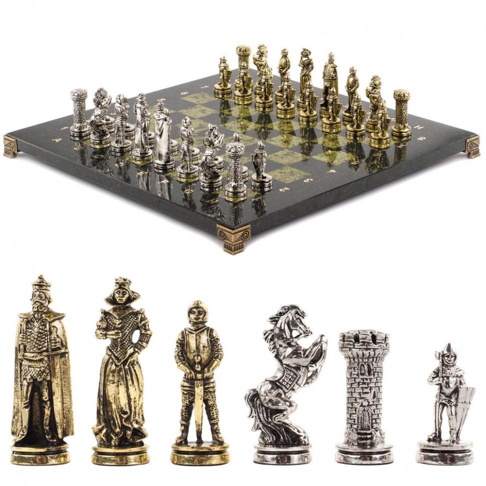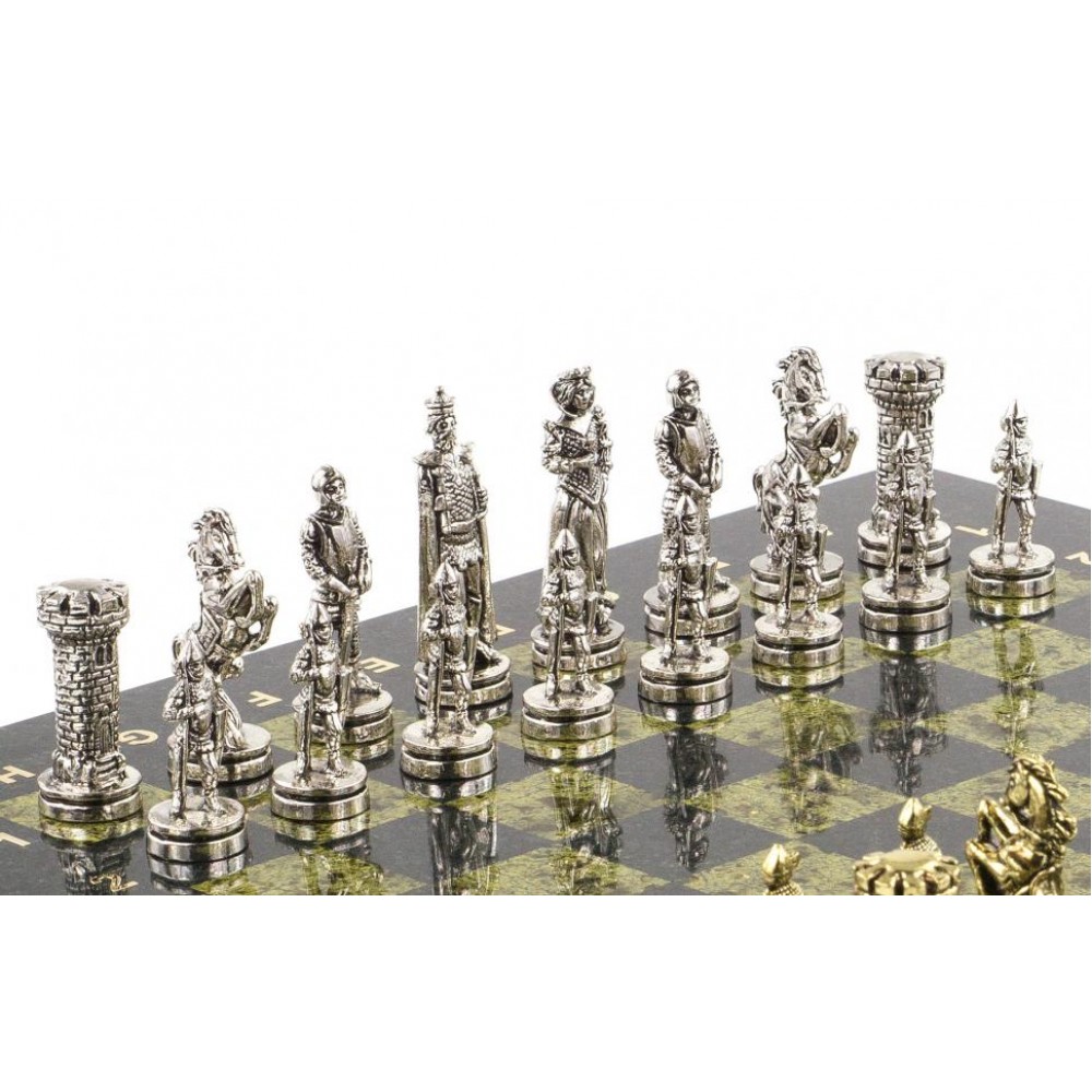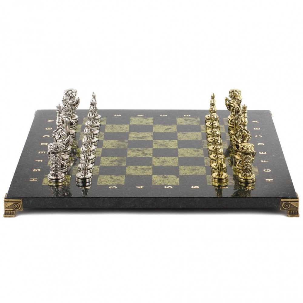 Шахматы "Рыцари" 36х36 см змеевик размером доска 36х36х2,5 см, клетка 3,5х3,5 см, высота фигур: пешка 4,4 см, король 6,8 см и весом 7500 г.
