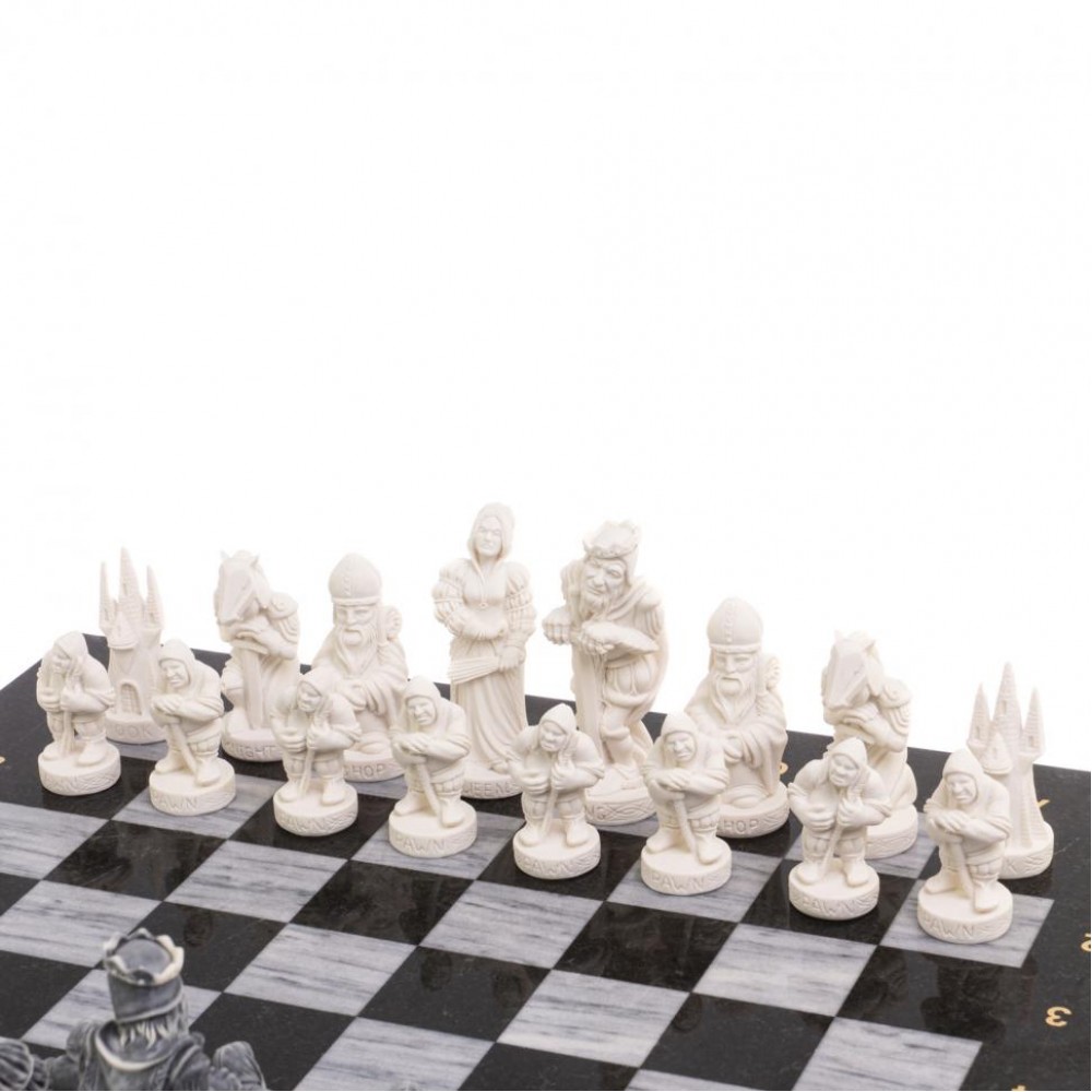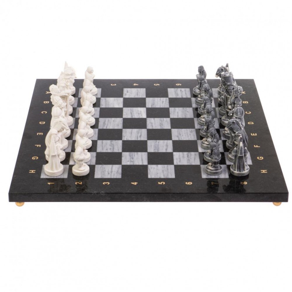Настольные шахматы из камня с оригинальными фигурами станут прекрасным подарком на день рождения мужчине, шахматисту или просто любителю игры. В комплекте футляр из экокожи.