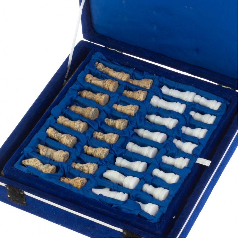 Шахматы "Сувенирные" из ракушечника и белого мрамора доска 20х20 см размером доска 20х20 см, клетка 2х2 см, высота фигур 3,2-5 см и весом 2400 г.