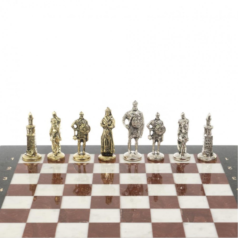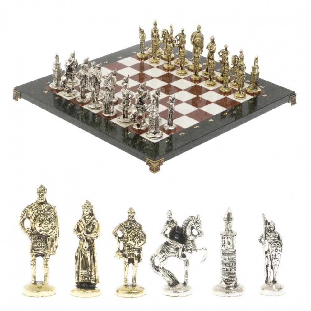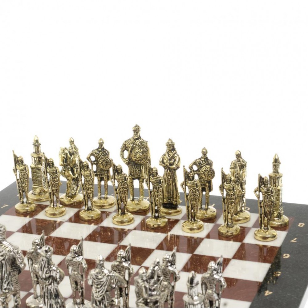 Шахматы сувенирные "Русь" доска 40х40 см камень мрамор лемезит размером доска 40х40х3 см, клетка 4х4, высота фигур: пешка 7 см, король 9,5 см и весом 11000 г.