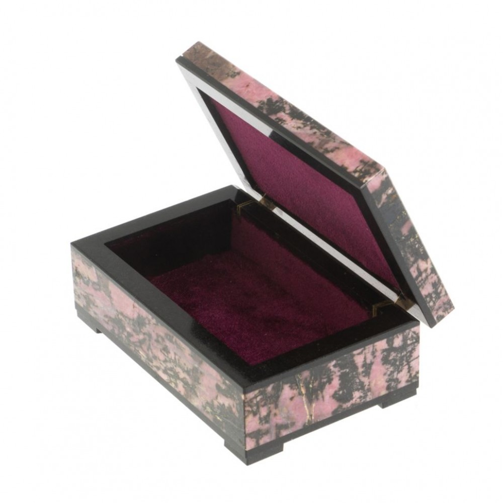 Шкатулка из камня родонит 11х7х4,5 см размером 11х7х4,5 см и весом 470 г.