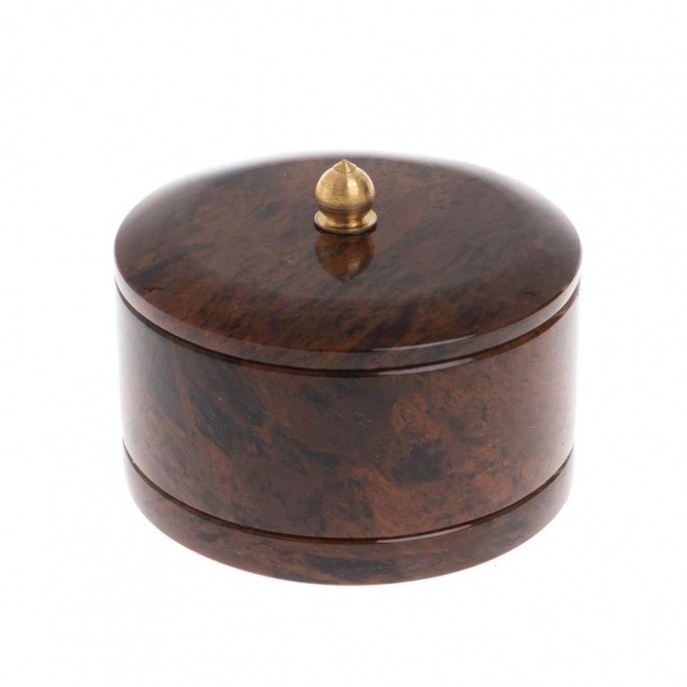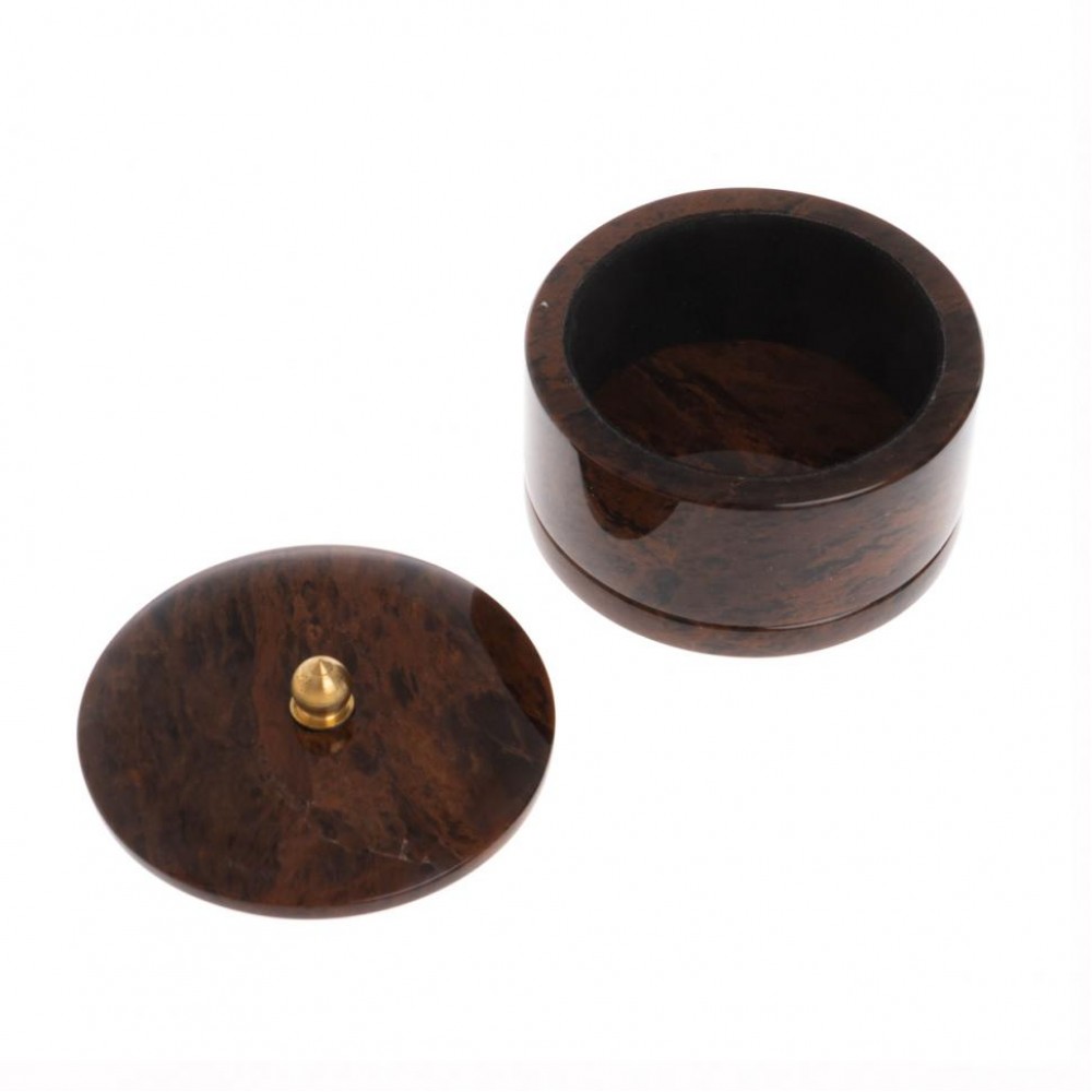 Шкатулка круглая из обсидиана 7,5х7,5х5,5 см размером 7,5х7,5х5,5 см и весом 380 г.