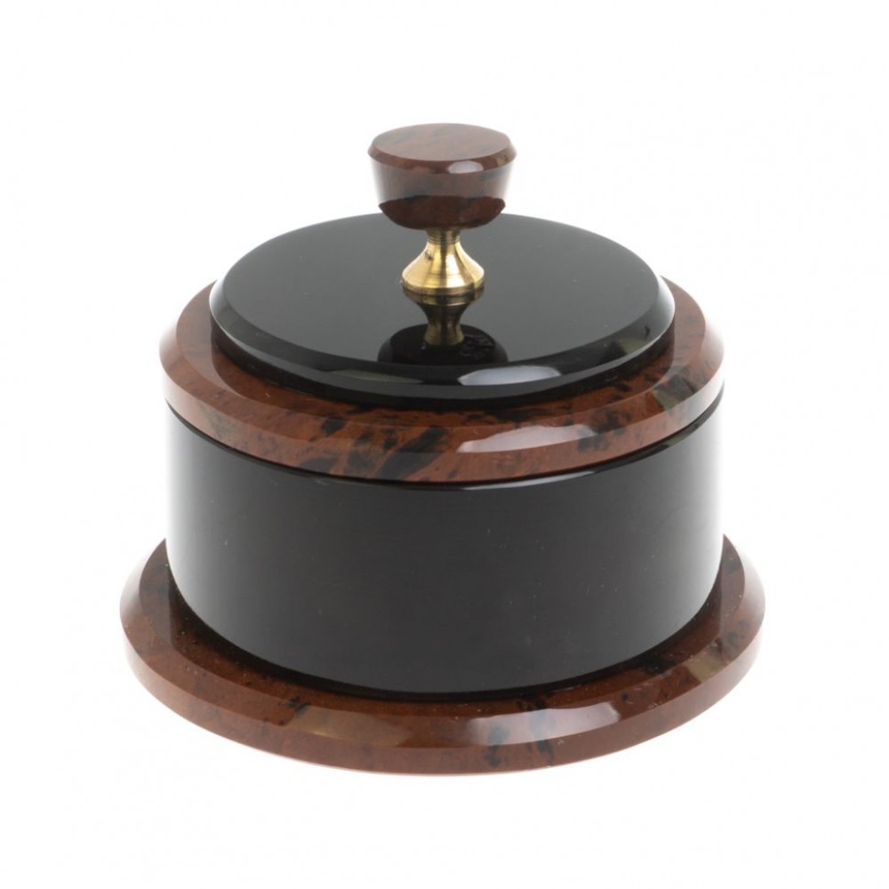 Шкатулка круглая из обсидиана 9,5х9,5х9,5 см размером 9,5х9,5х8 см и весом 500 г.