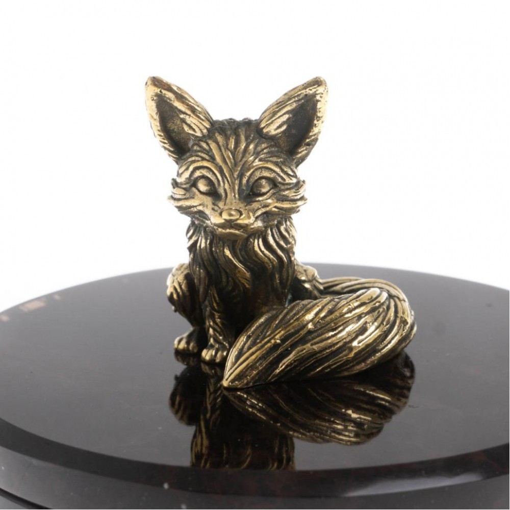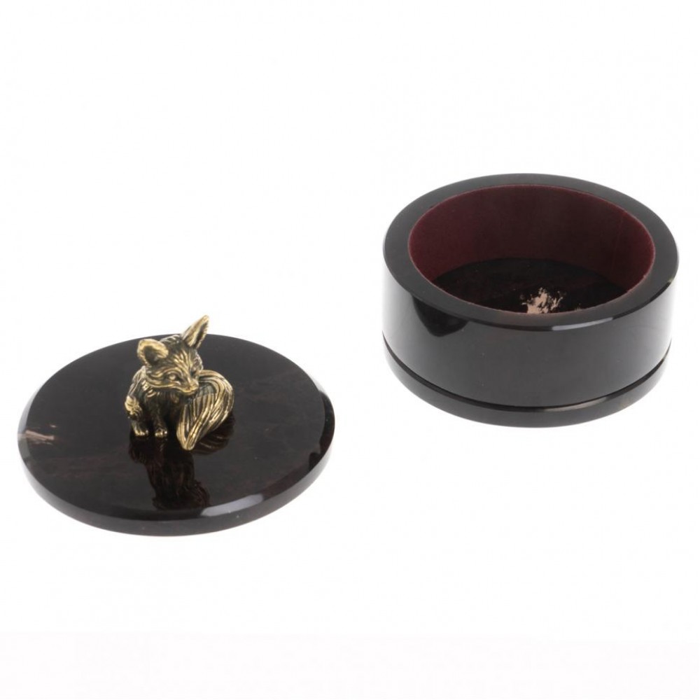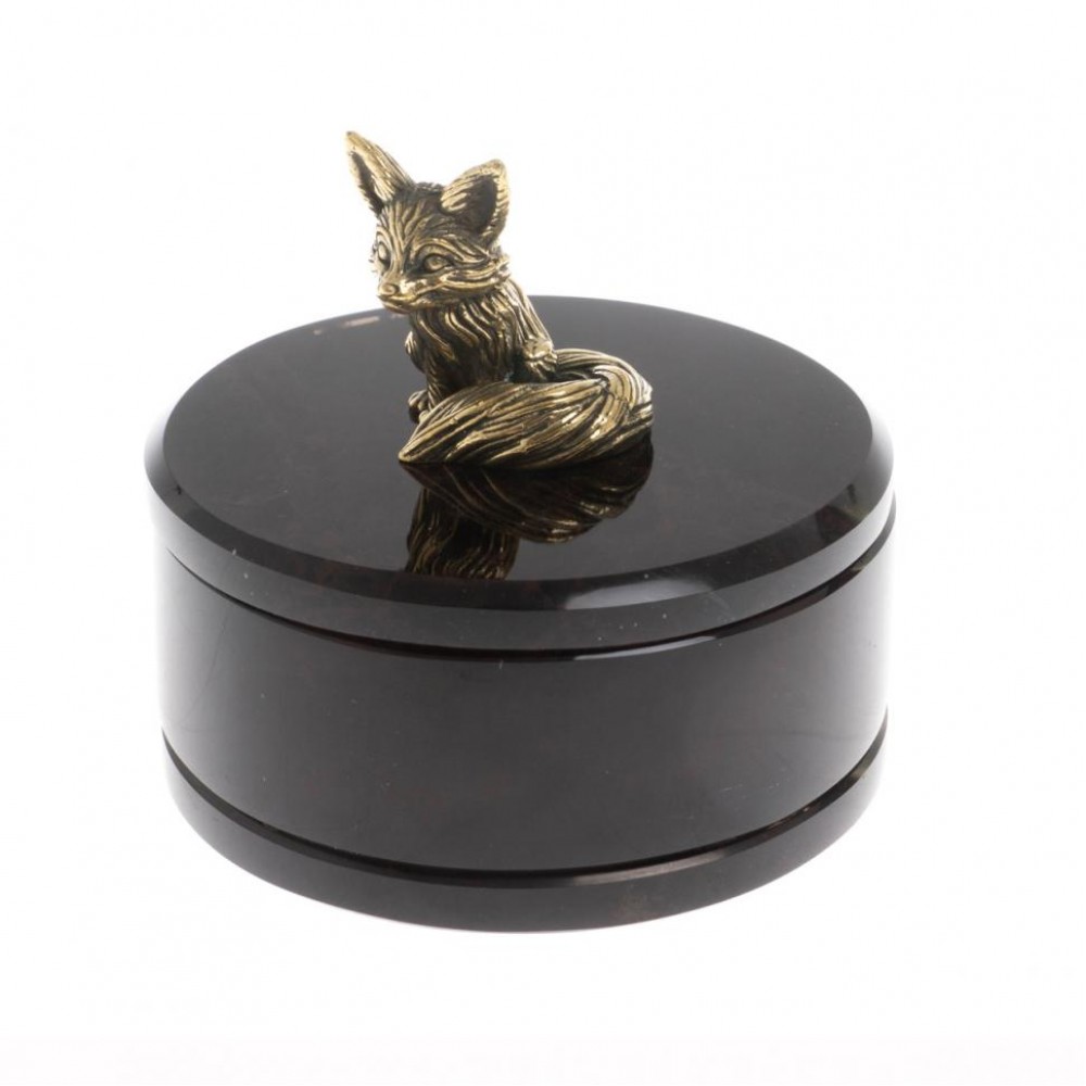 Шкатулка круглая "Лисенок" из черного обсидиана 7,5х7,5х8 см размером 7,5х7,5х8 см и весом 450 г.