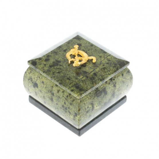 Шкатулка квадратная с ящерицей из змеевика 7,5х7,5х6,5 см размером 7,5х7,5х6,5 см и весом 430 г.