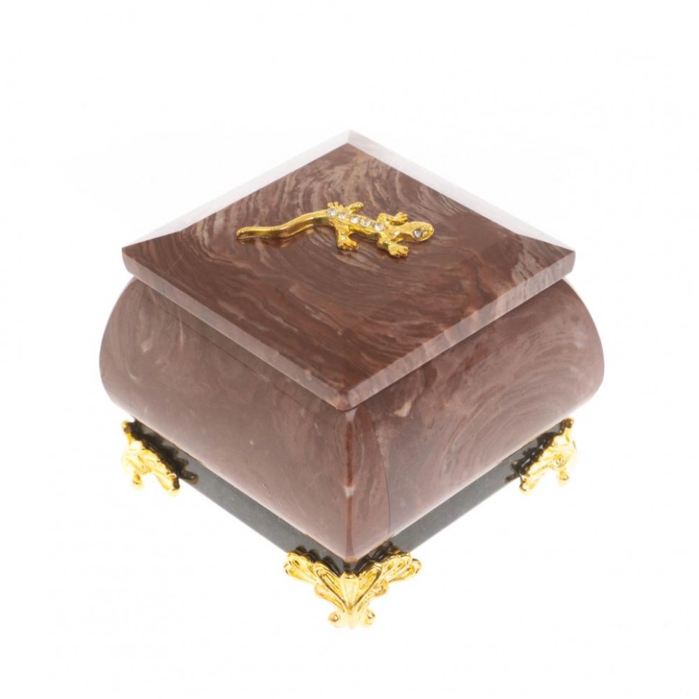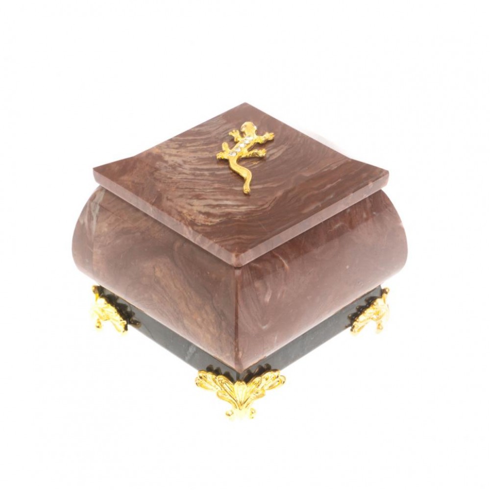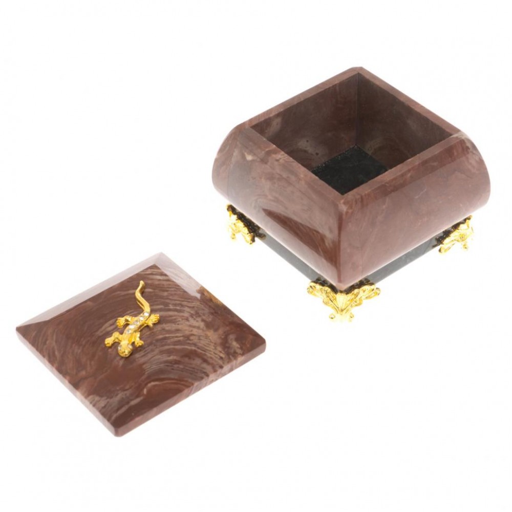 Шкатулка квадратная с ящерицей камень лемезит 6х6х5 см размером 6х6х5 см, внутренний размер 4х4х3 см и весом 250 г.