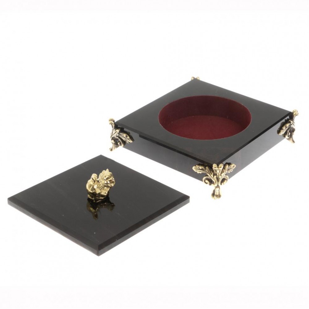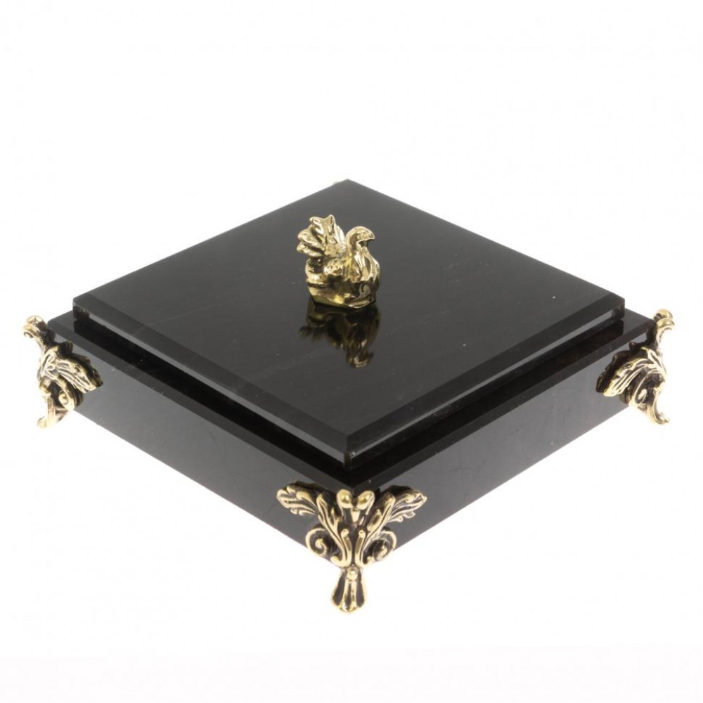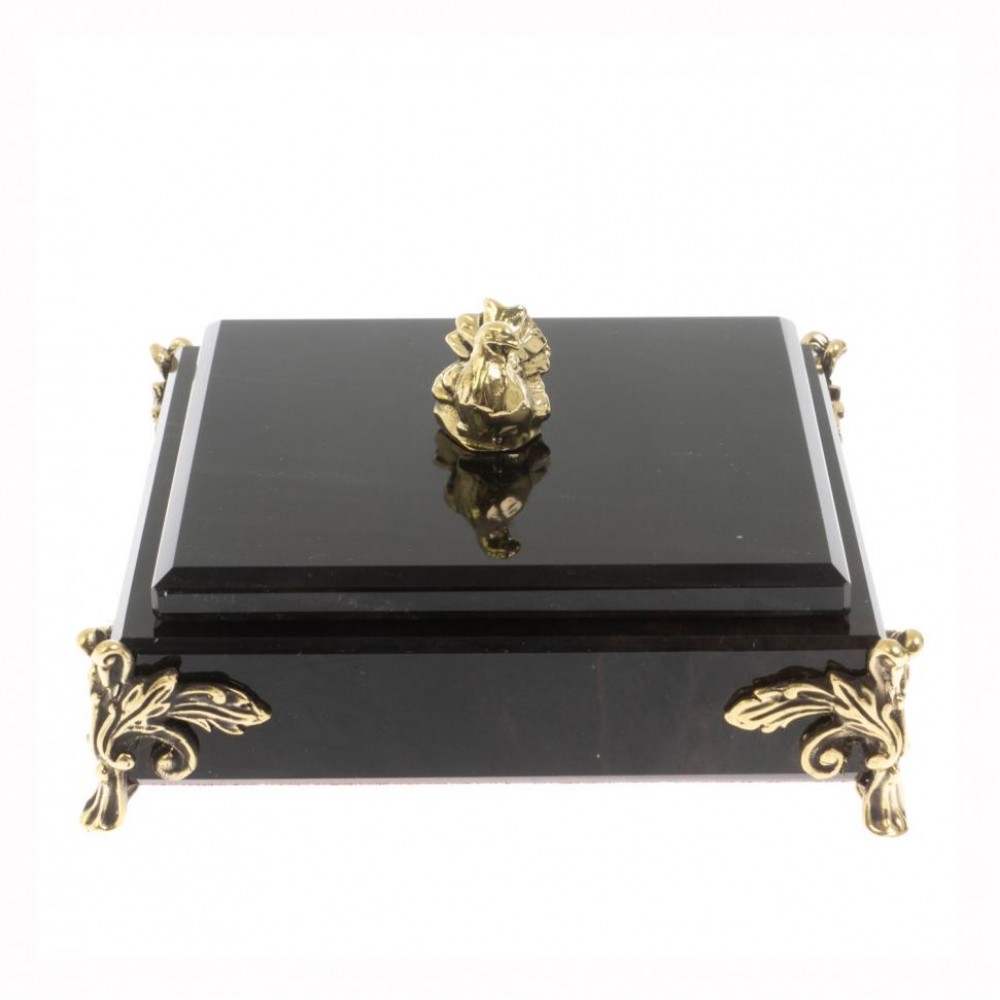Шкатулка "Птичка" из черного обсидиана и бронзы размером 12х12х6,5 см и весом 760 г.