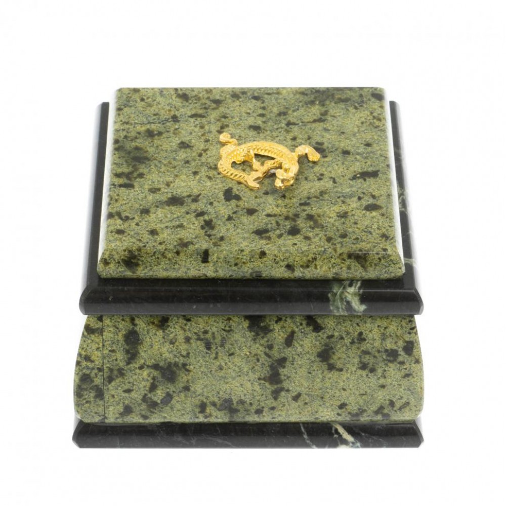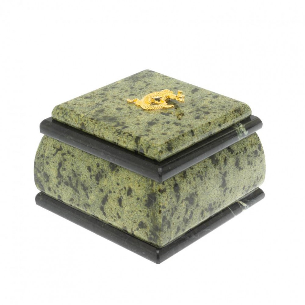 Шкатулка с ящерицей из змеевика 9,5х9,5х7 см размером 9,5х9,5х7 см и весом 850 г.
