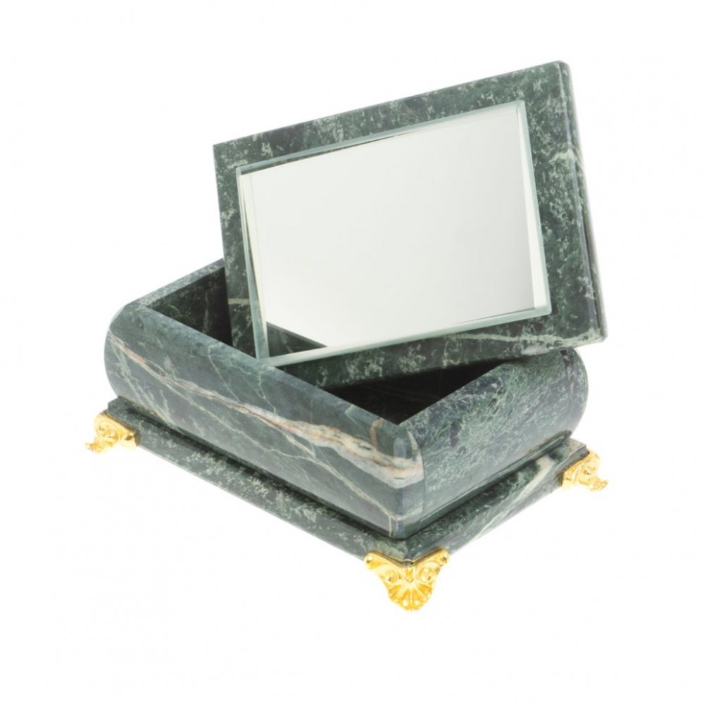 Шкатулка с зеркалом на ножках шабровский змеевик 10х7х6 см размером 10х7х6 см и весом 520 г.