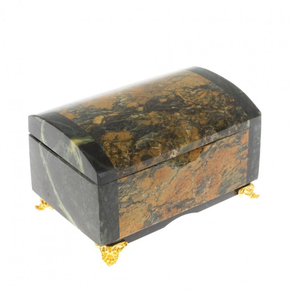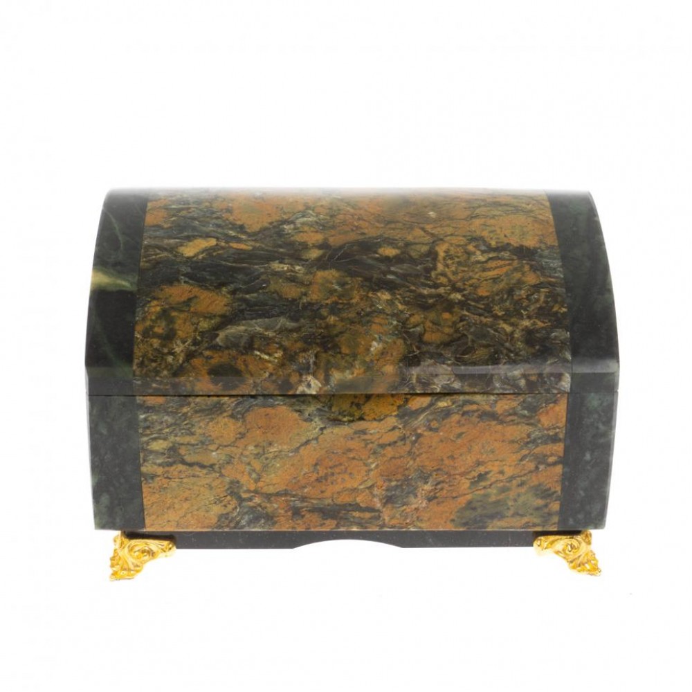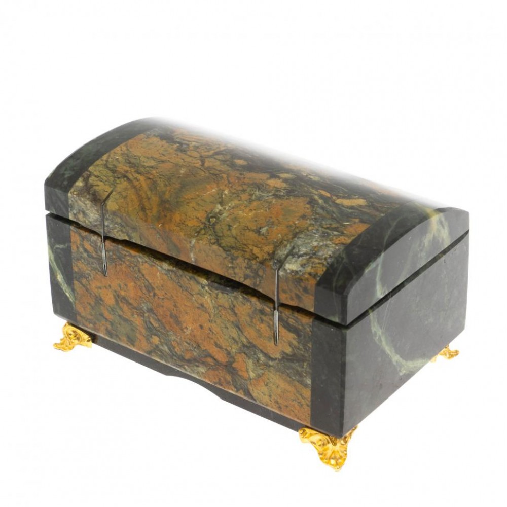 Шкатулка "Сундук" из лиственита и змеевика размером 12х7х6,5 см и весом 870 г.