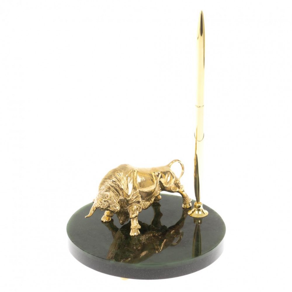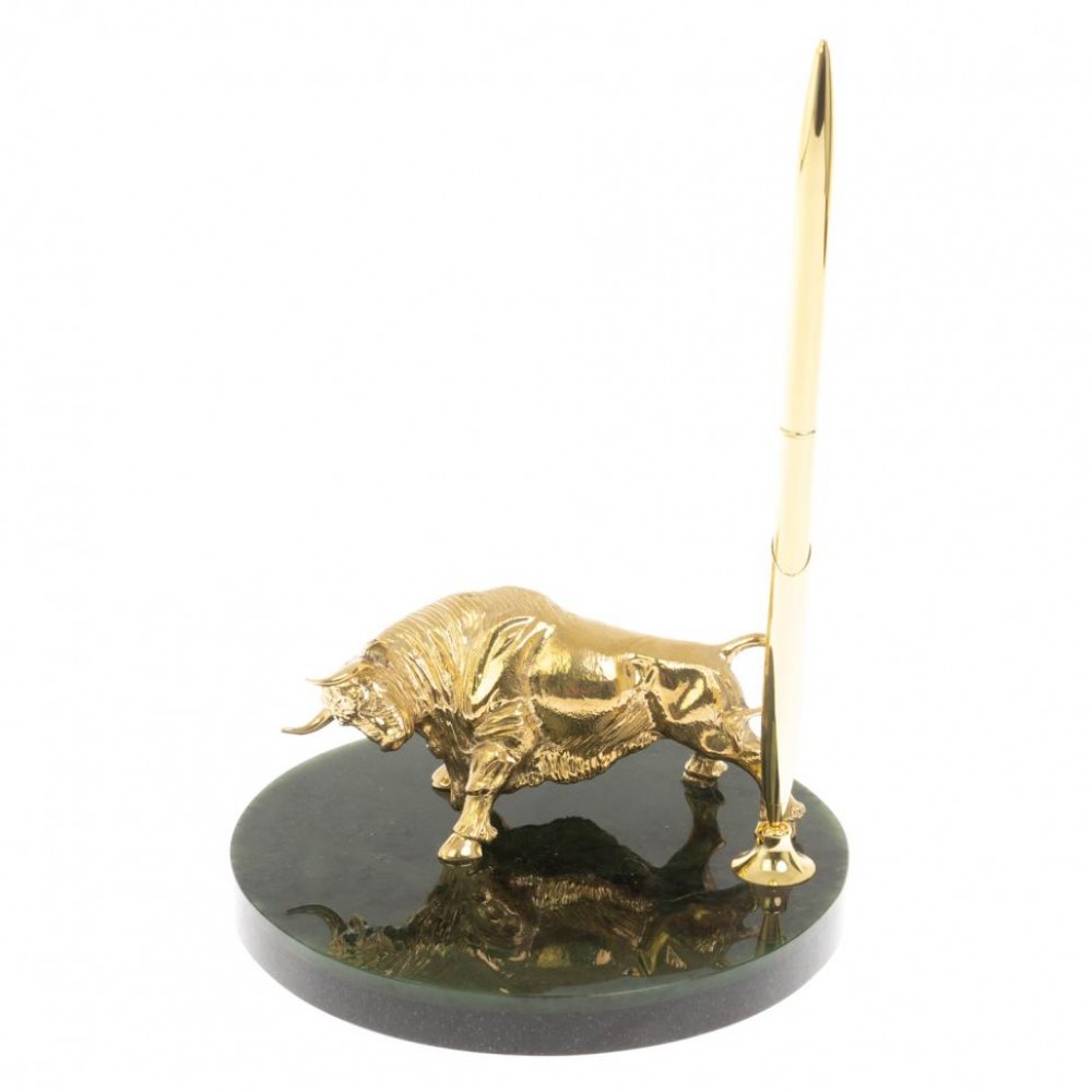 Статуэтка "Бык" с подставкой под ручку на нефрите 13х13х22 см размером 13х13х22 см и весом 900 г.