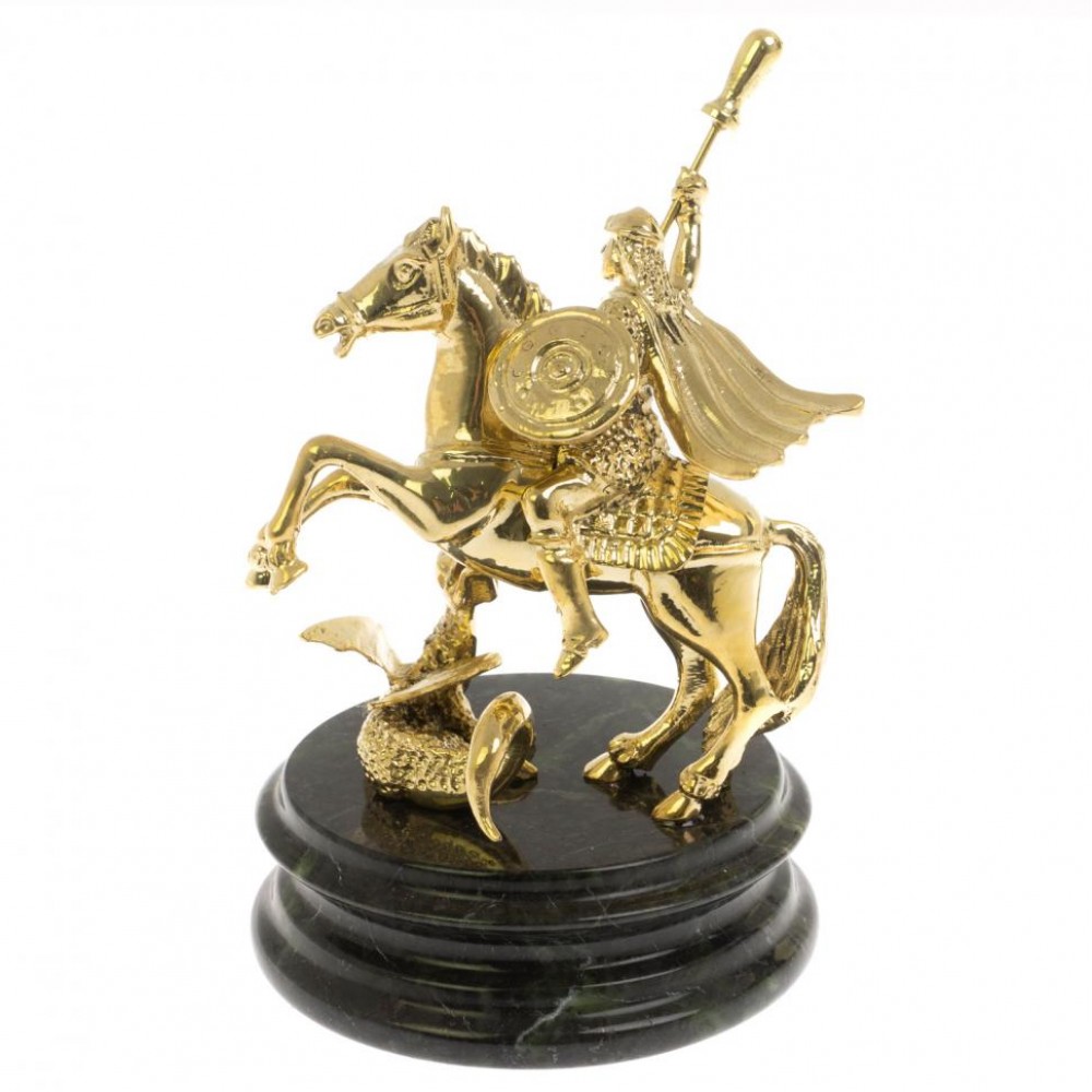 Статуэтка "Георгий Победоносец" на шабровском змеевике размером 10х10х15 см и весом 1100 г.