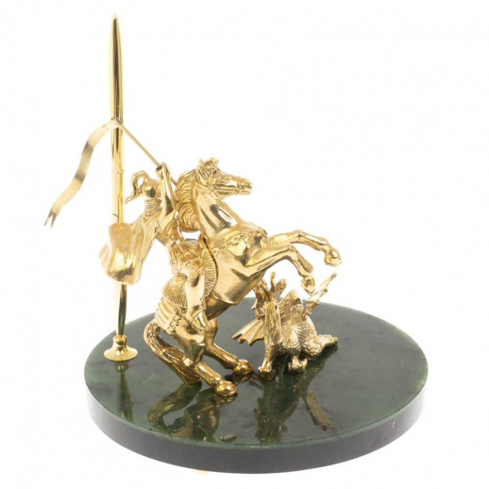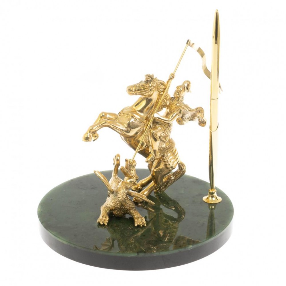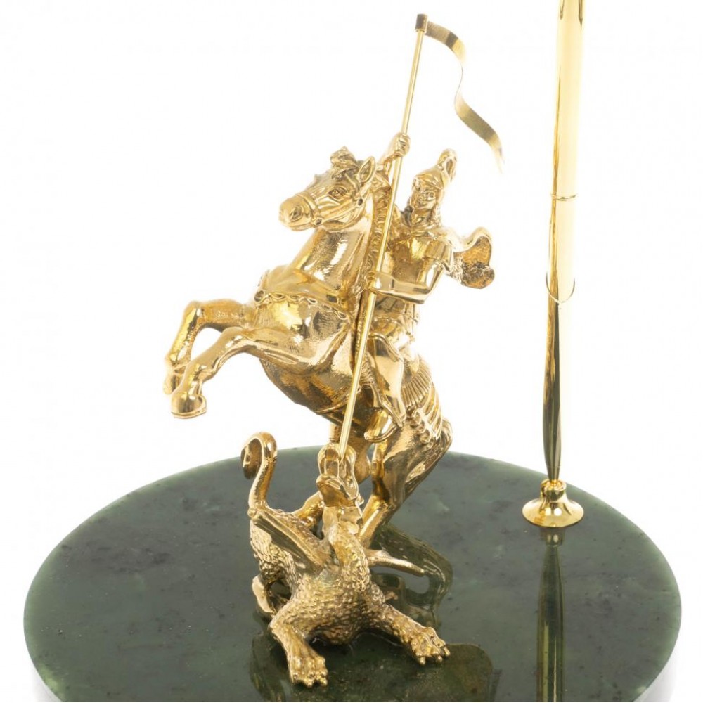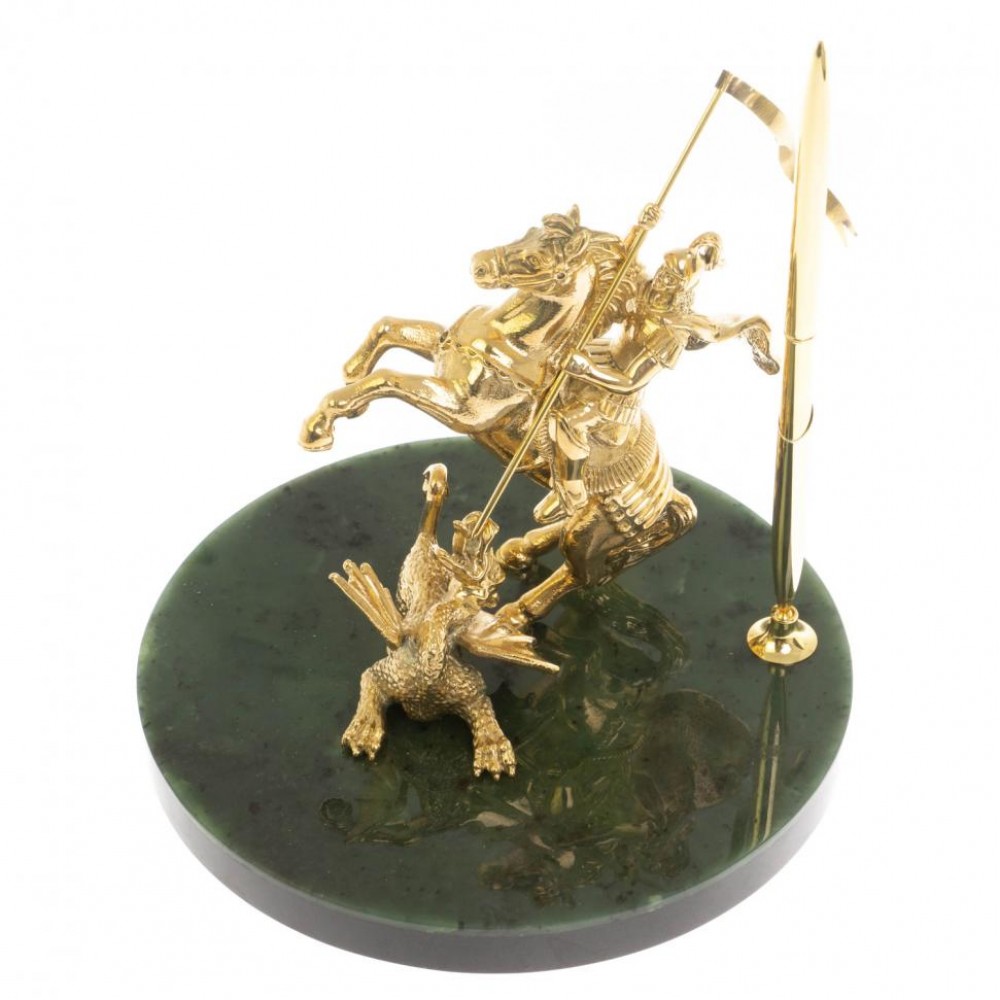 Статуэтка "Георгий Победоносец" с подставкой под ручку на нефрите 18х18х18 см размером 18х18х18 см и весом 2100 г.