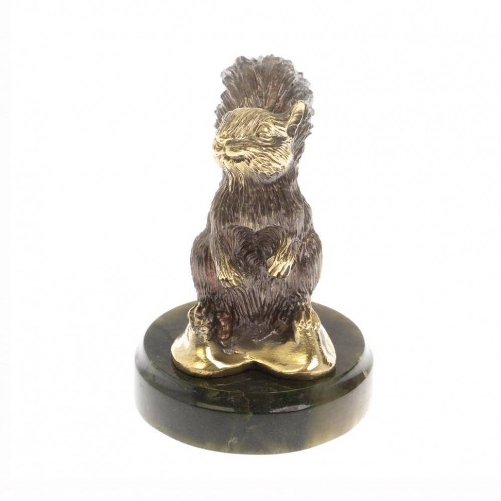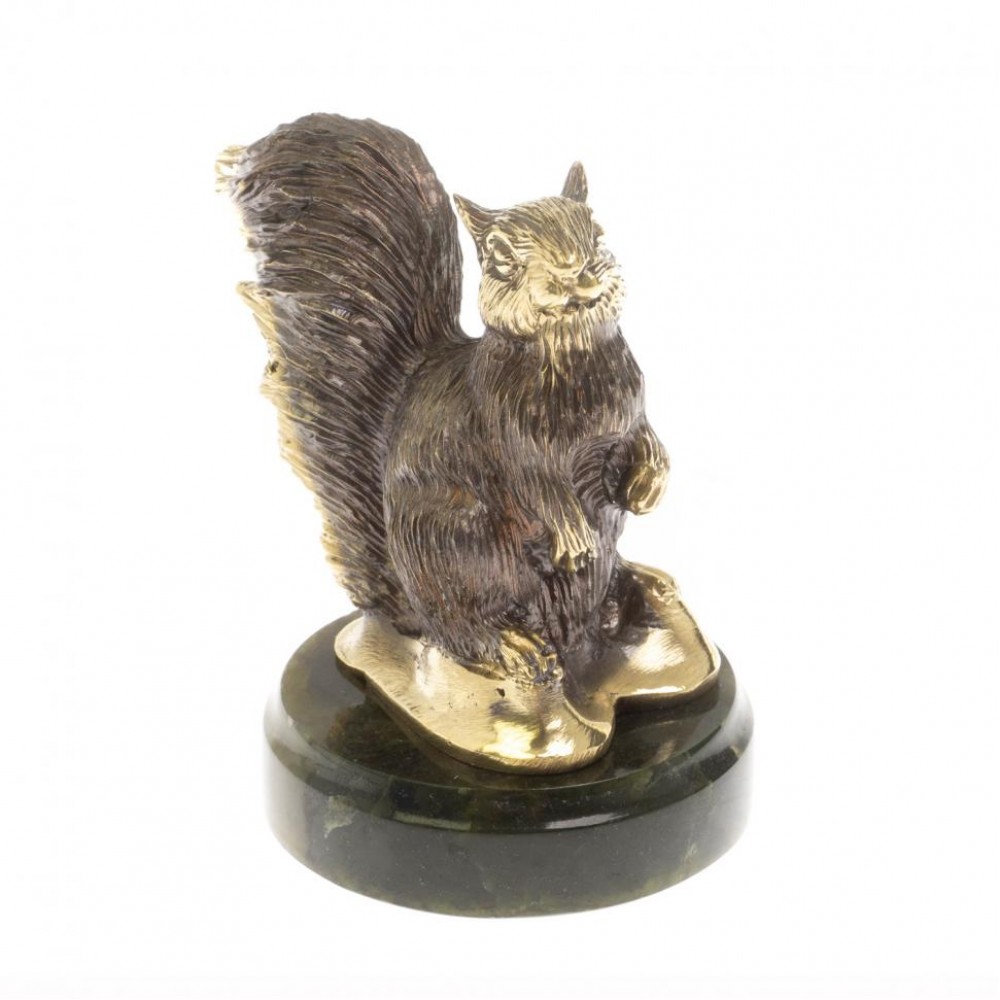 Статуэтка из бронзы "Белочка" на нефрите размером 7,5х7,5х11 см и весом 780 г.