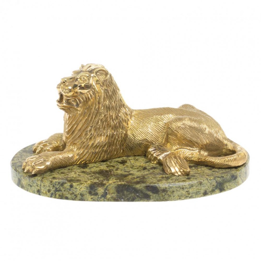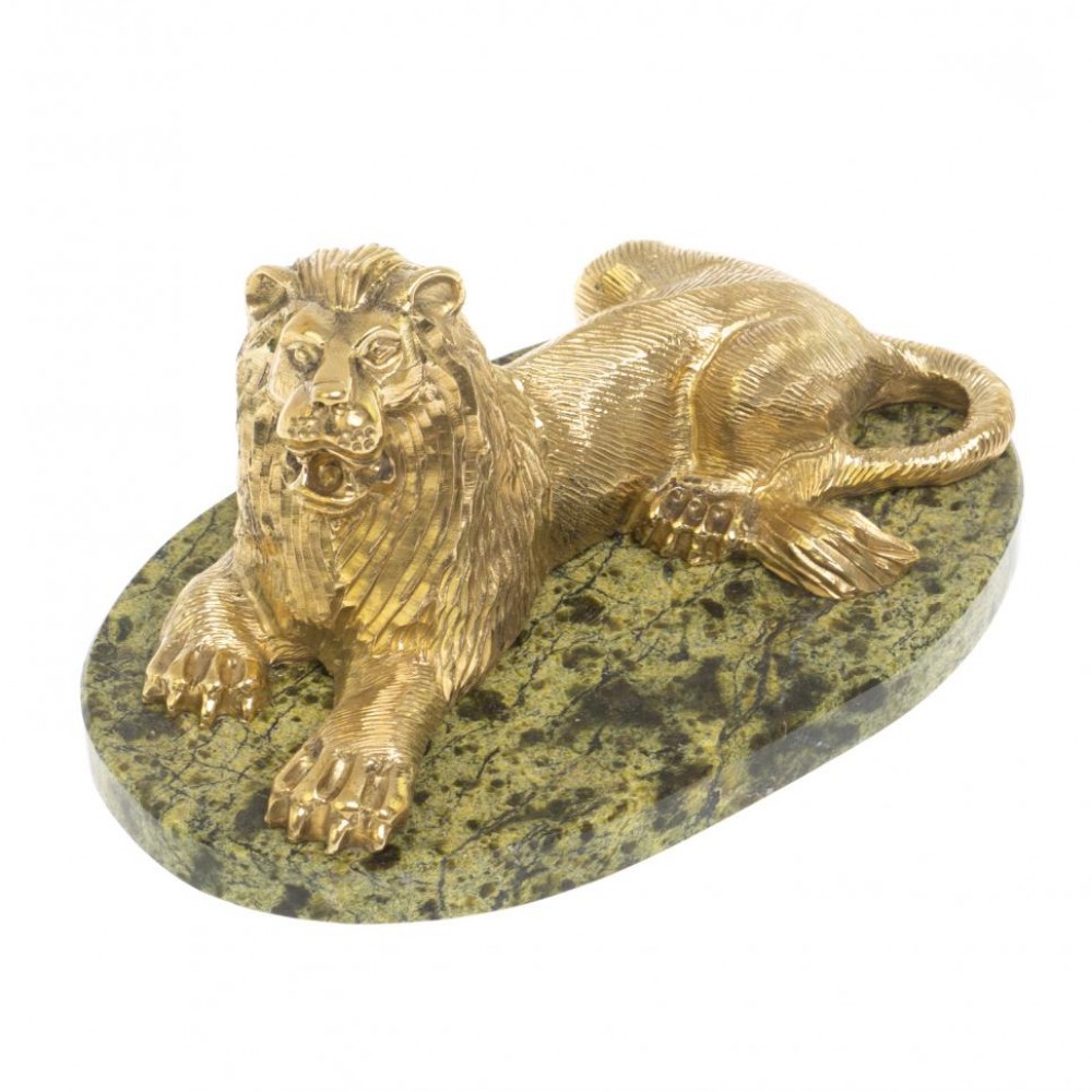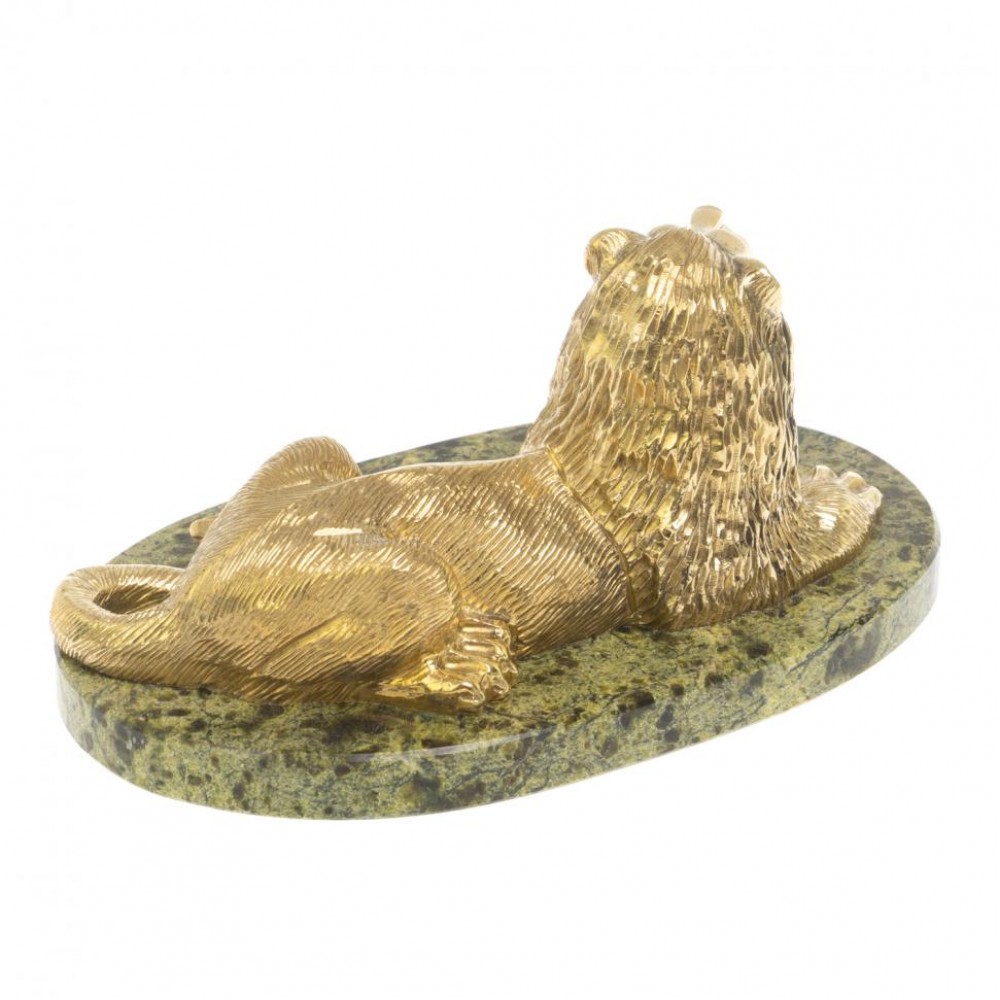 Статуэтка из бронзы "Лев на отдыхе" змеевик размером 14х9х8 см и весом 780 г.