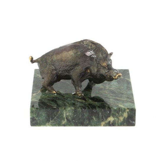 Статуэтка "Кабан" бронза патина змеевик размером 5х2,5х3,5 см и весом 100 г.