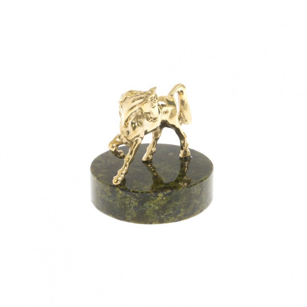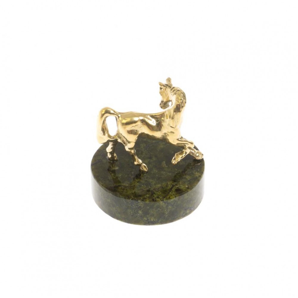 Статуэтка "Лошадка" из бронзы на круглой подставке из светло-зеленого змеевика размером 3,5х3,5х4,5 см и весом 50 г.