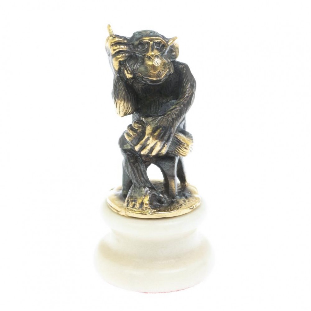 Статуэтка "Обезьяна с телефоном" мрамор бронза размером 4,5х4,5х9 см и весом 265 г.