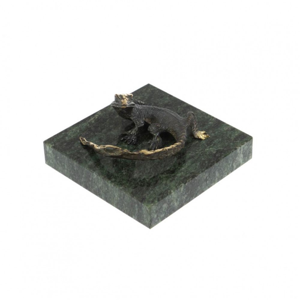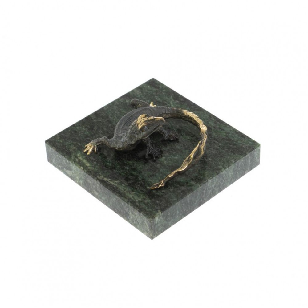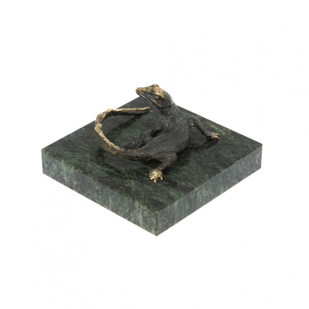 Статуэтка "Ящерица с длинным хвостом" бронза змеевик размером 5х5х2,5см и весом 75 г.