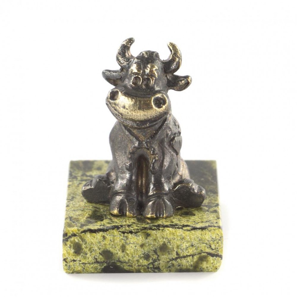 Сувенир "Бычок с подковой" бронза змеевик размером 3,6х3,6х4,2 см и весом 60 г.