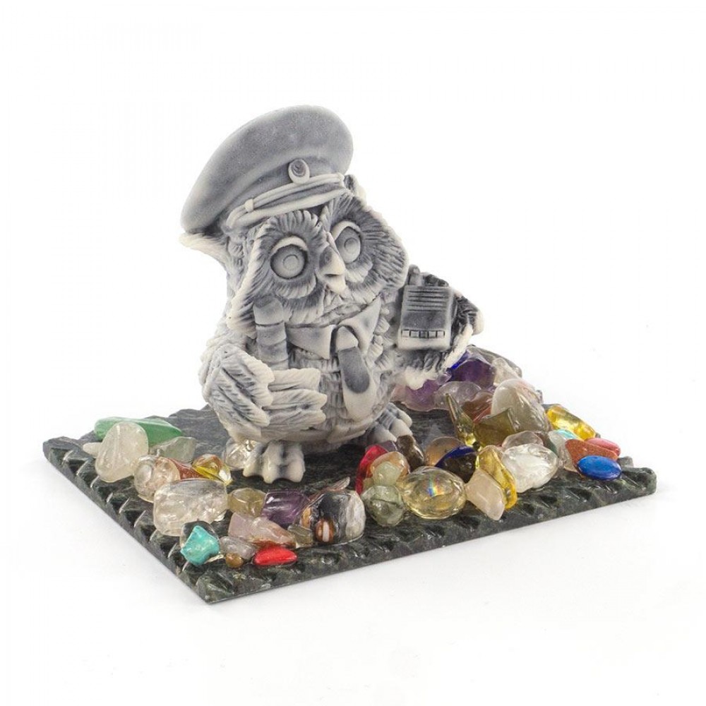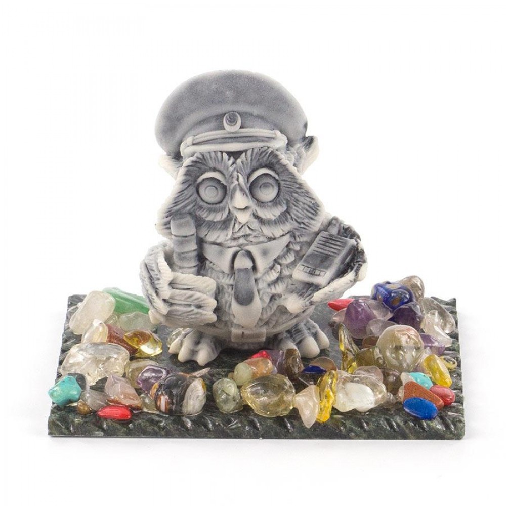 Сувенир "Филин гаишник" из мрамолита размером 9х6,5х7 см и весом 165 г.