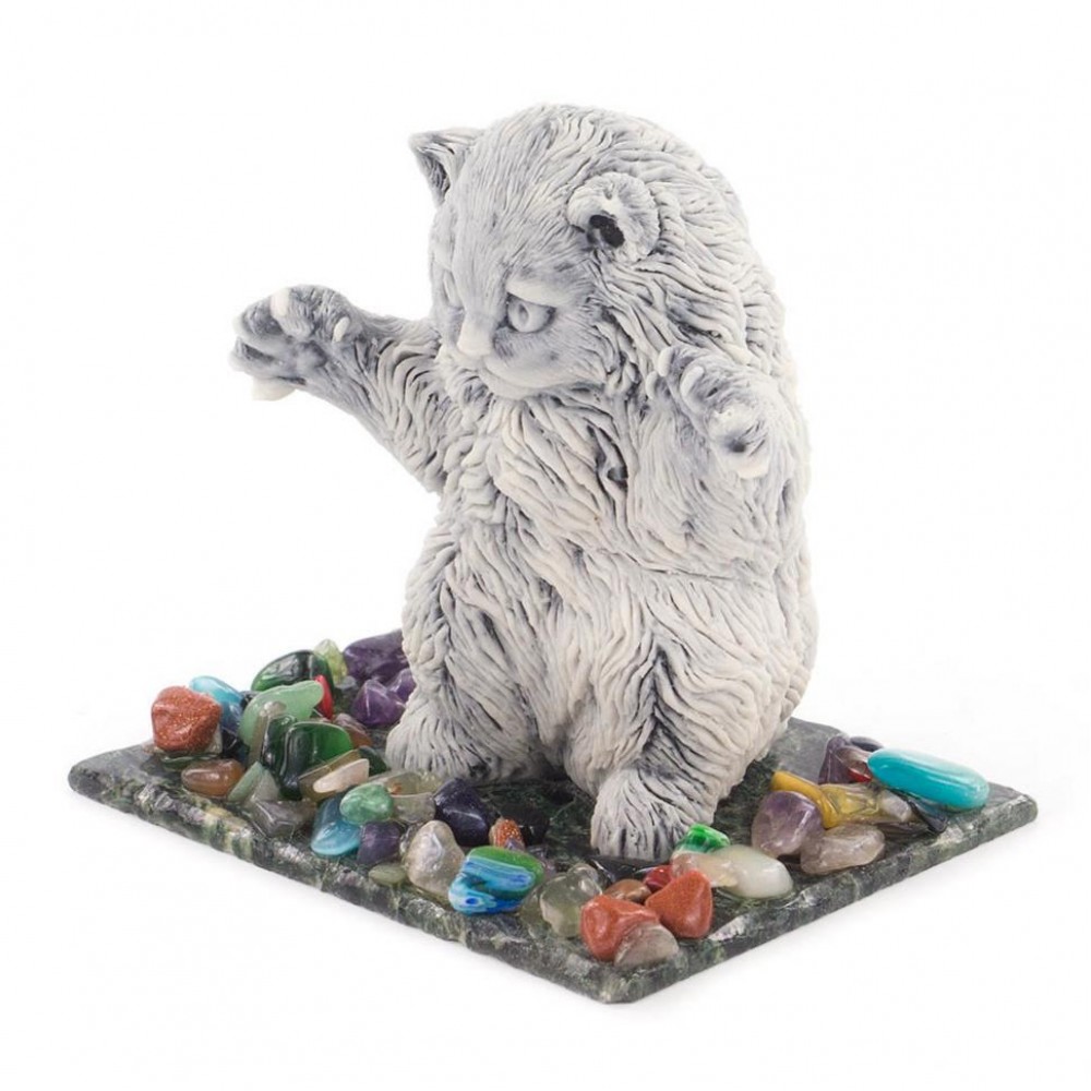 Сувенир "Кот играет" из мрамолита размером 10,5х8,5х10 см и весом 450 г.