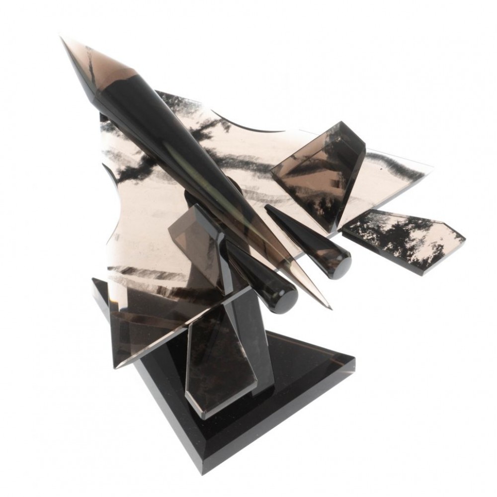Сувенир "Самолет СУ - 57" из черного обсидиана размером 16х7,5х15 см и весом 680 г.