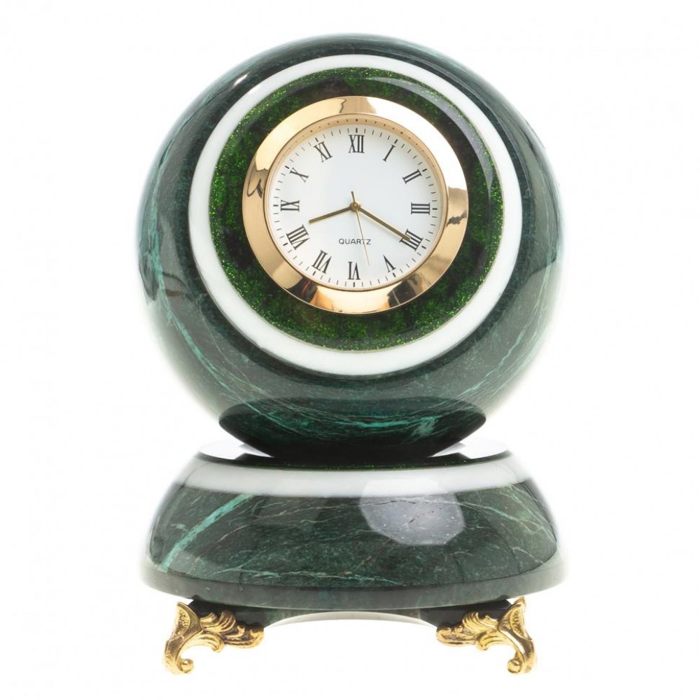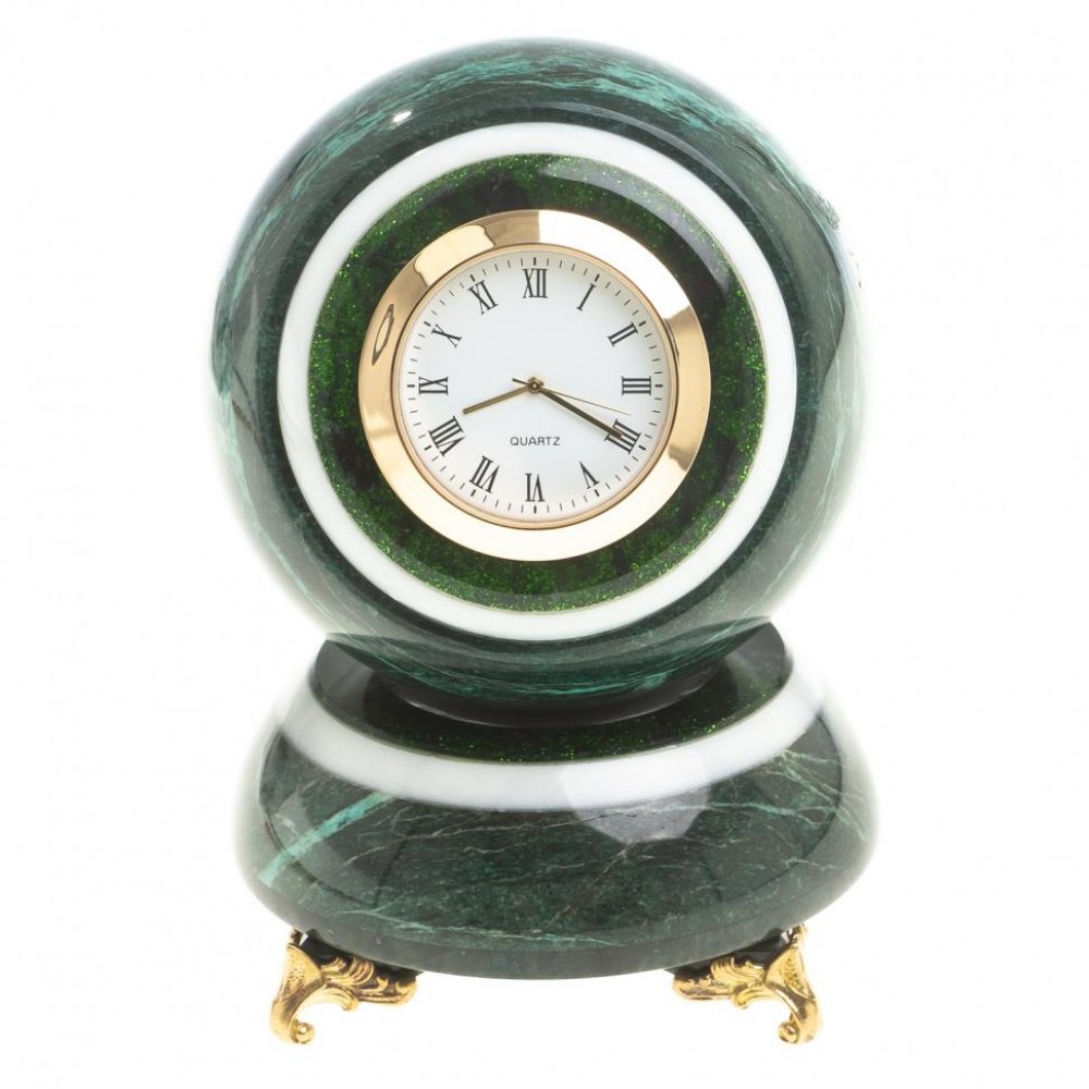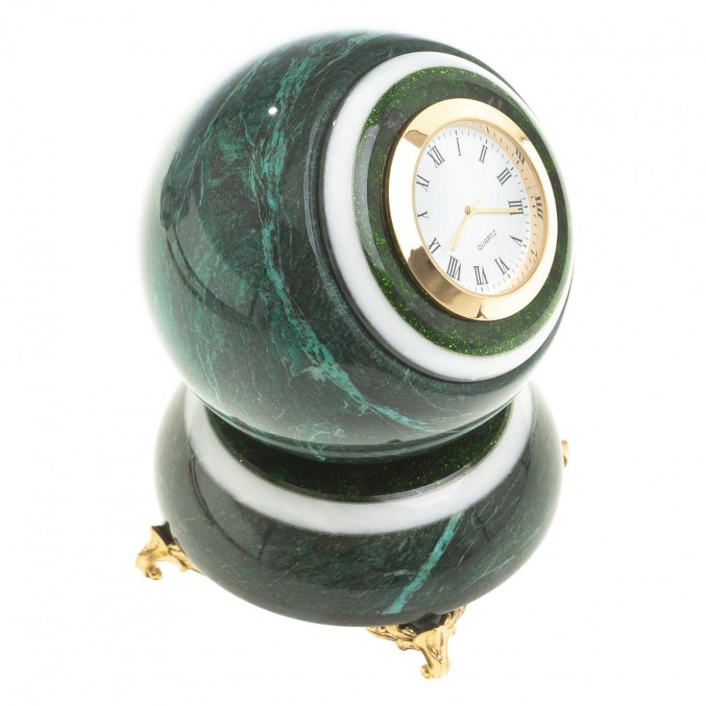 Сувенирные часы "Шар Антистресс" камень змеевик 9,5х9,5х13 см размером и весом 1500 г.