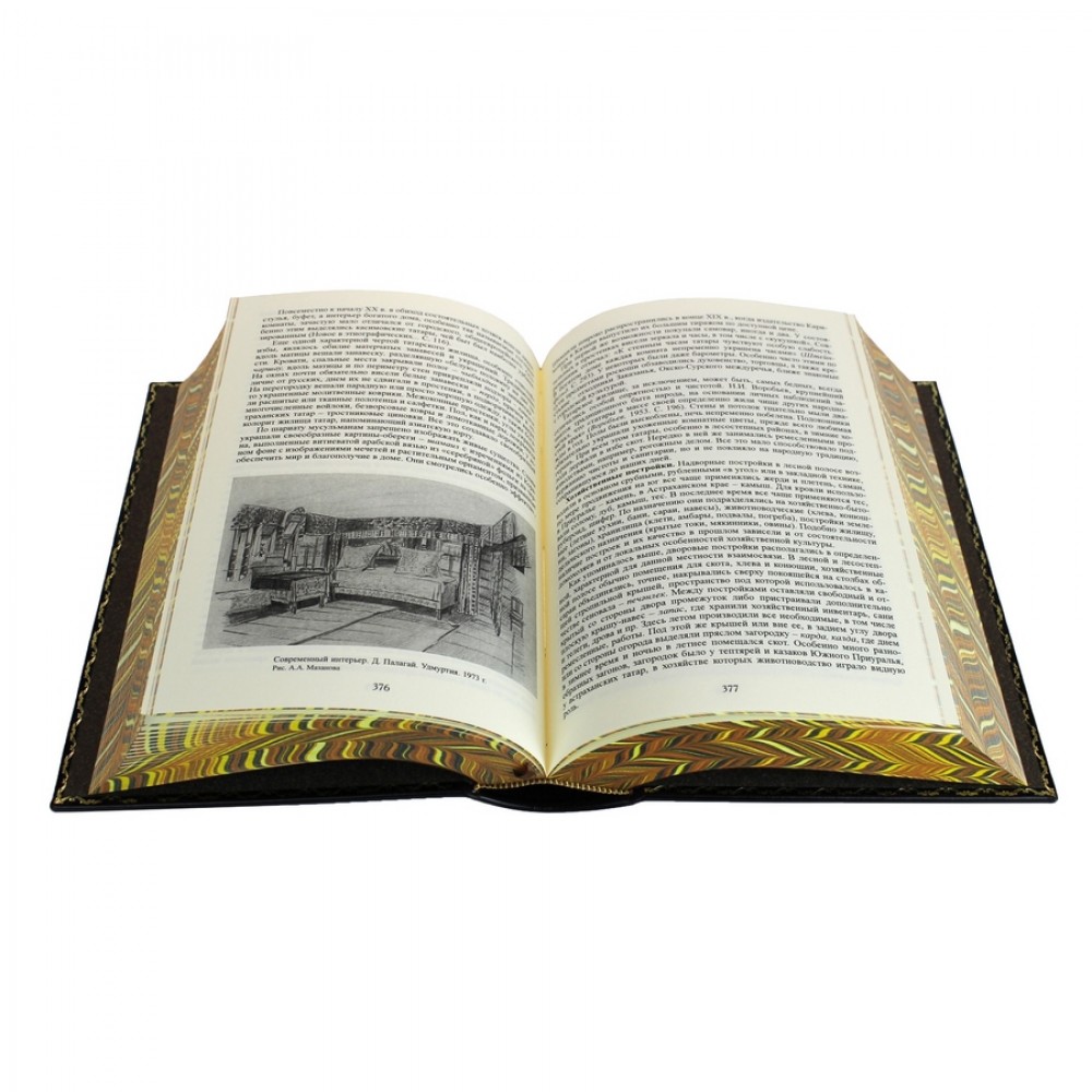 Цельнокожаный переплёт ручной работы, украшен золотым и блинтовым тиснением. Корешок декорирован бинтами. Текст книги напечатан на бумаге Palatina Avorio 100 Австрийского производства и дополнен цветными иллюстрациями. Обрез оформлен в технике "Перо павлина". Ляссе из шёлковой ленты. Форзац цельный из дизайнерской бумаги.